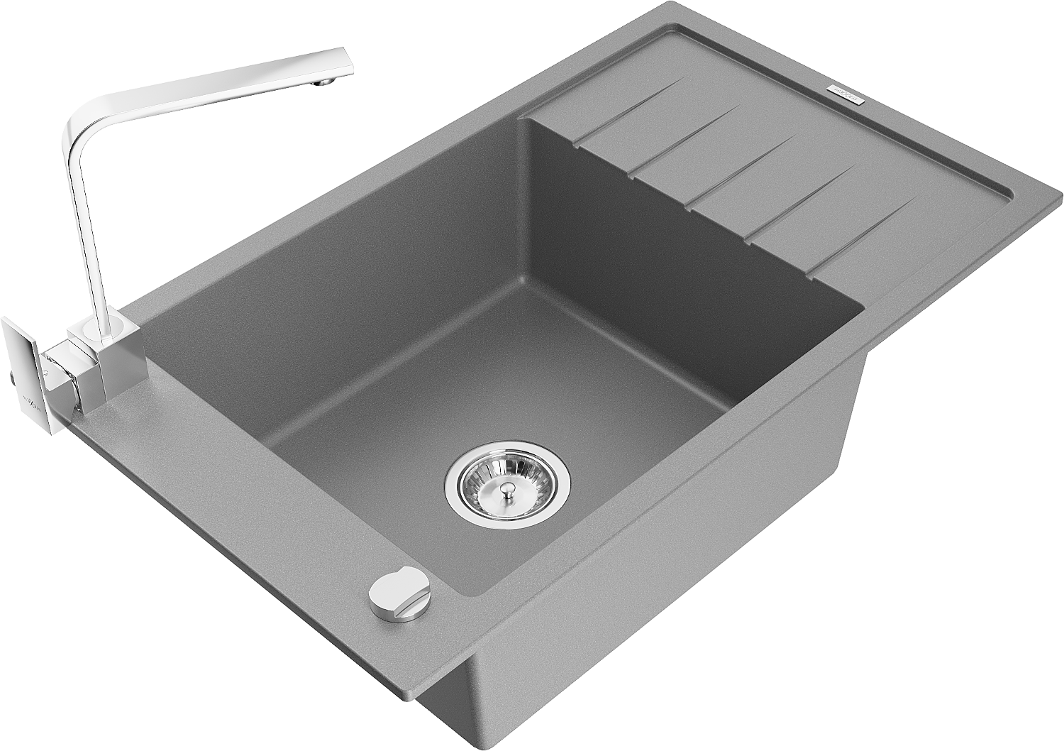 Mexen Elias granite sink with 1 bowl, drainer, and Rita kitchen tap, grey - 6511-71-670300-00