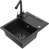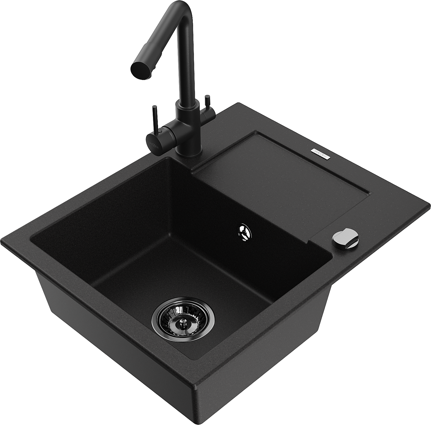 Mexen Enzo 1-bowl granite sink with drainer and Duero kitchen tap, black - 6506-77-671600-70-B