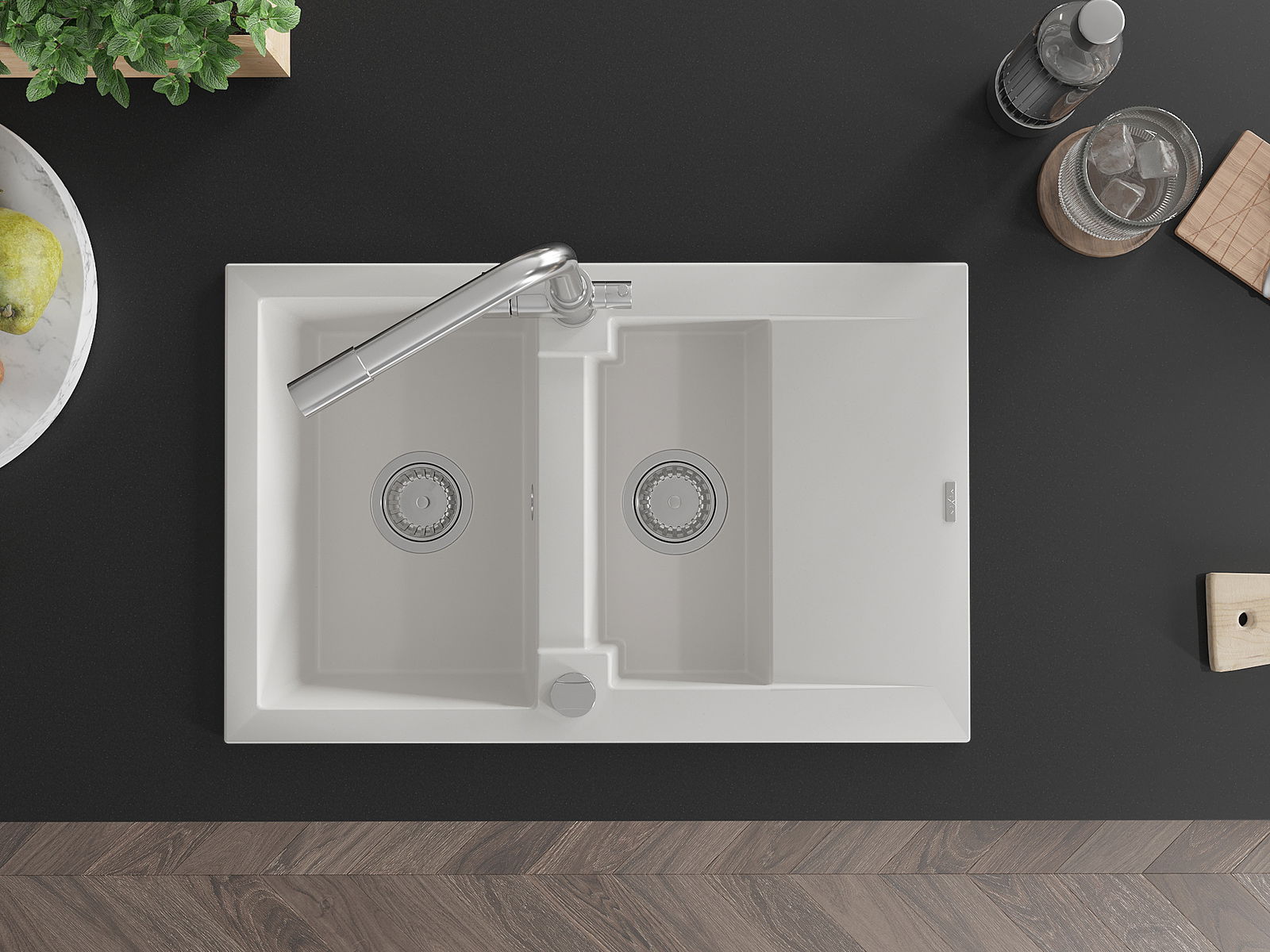 The surface of the sink is resistant to stains and discoloration, thanks to which it is easy to clean and retains its color for a long time. Aesthetic and practically complementing every kitchen.