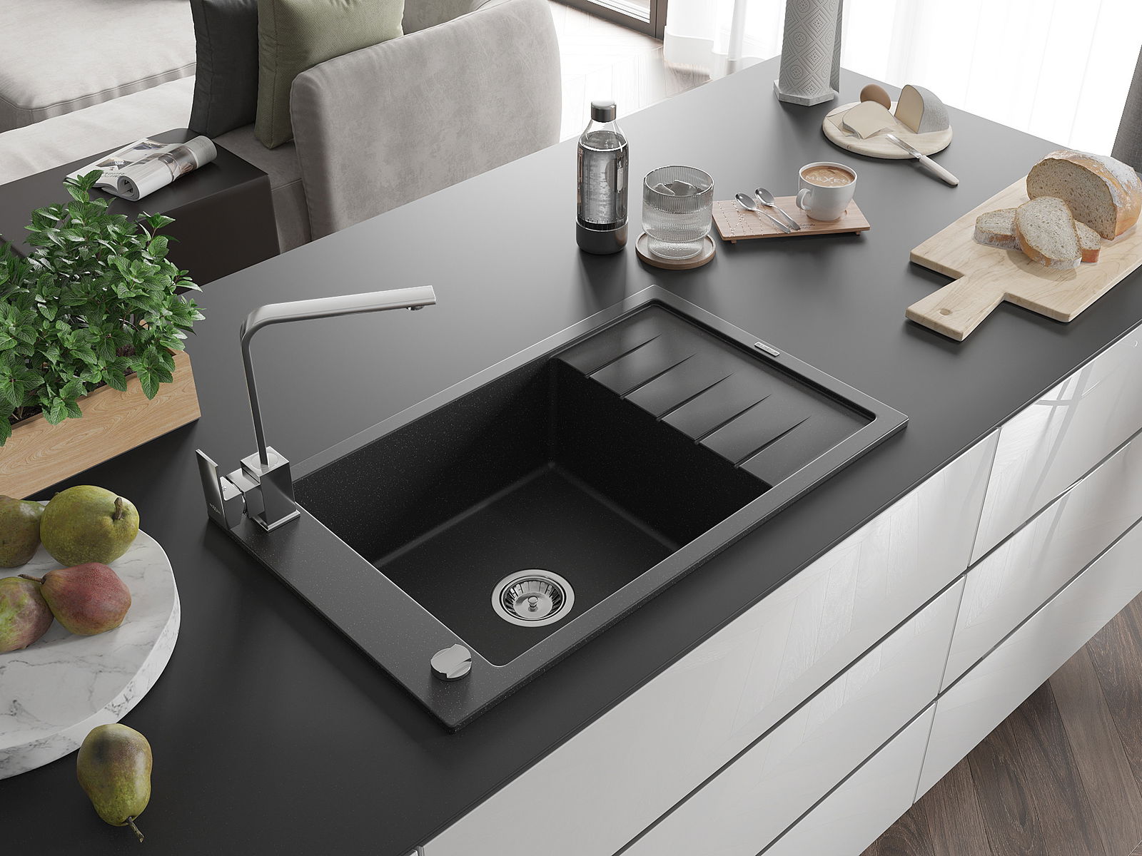 The sink is made of high quality granite. It is an elegant and, above all, practical complement to every kitchen, regardless of its style. High quality and granite durability ensure many years of use.