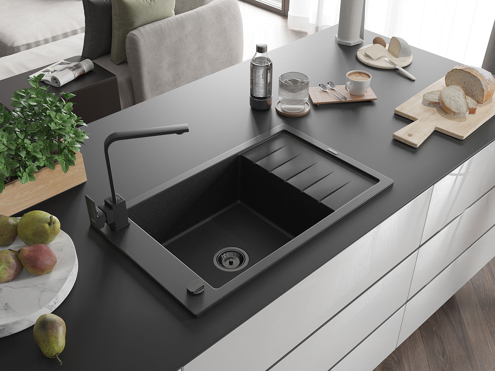 The sink is made of high quality granite. It is an elegant and, above all, practical complement to every kitchen, regardless of its style. High quality and granite durability ensure many years of use.