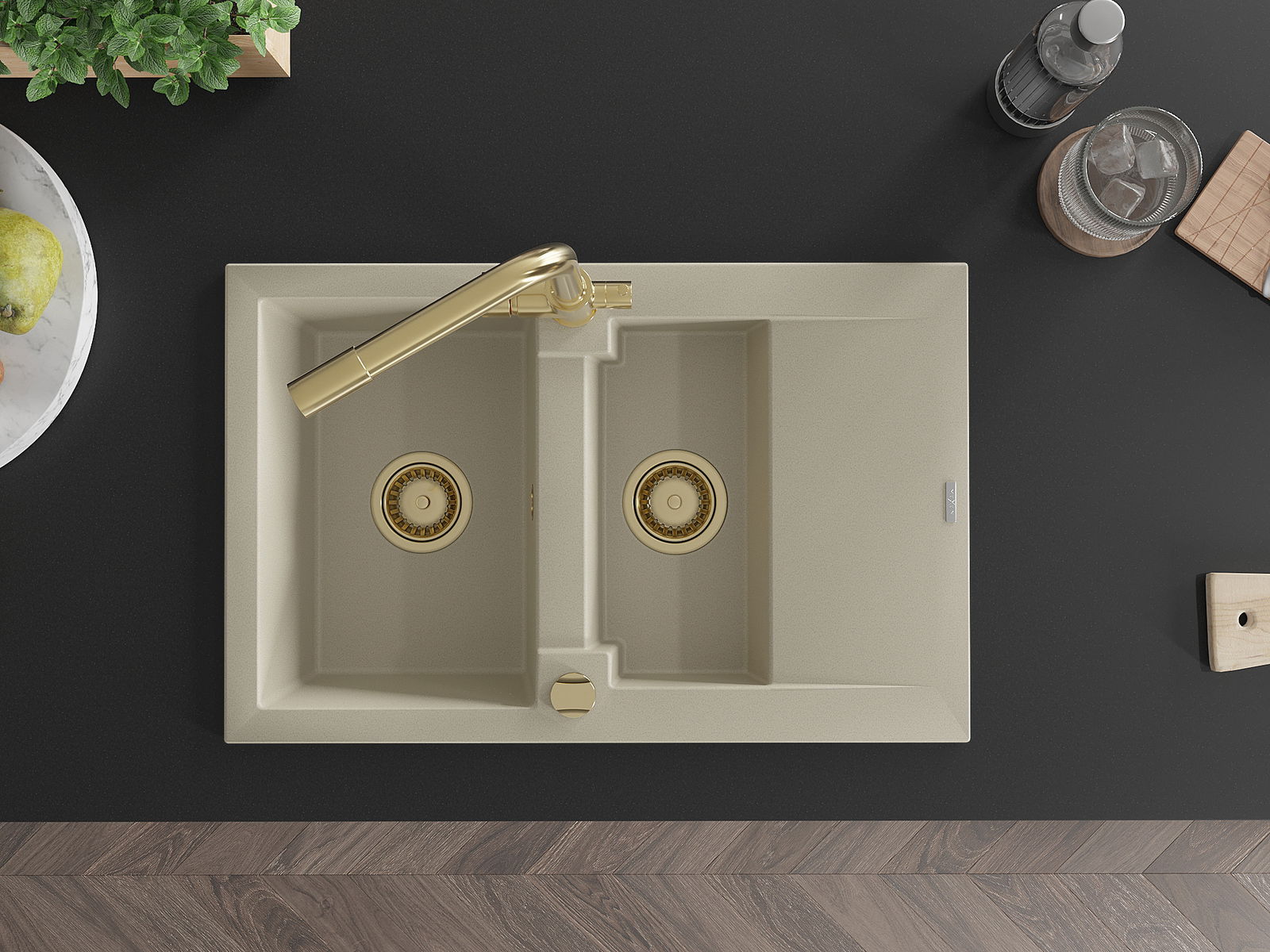 Mexen Gaspar Granite Kitchen Sink 1.5-Bowl with Drainer and Duero Kitchen Tap, Beige - 6507-69-671600-50