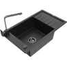 Mexen Elias granite sink 1-bowl with drainer and kitchen tap Rita, black speckled - 6511-76-670300-70-B