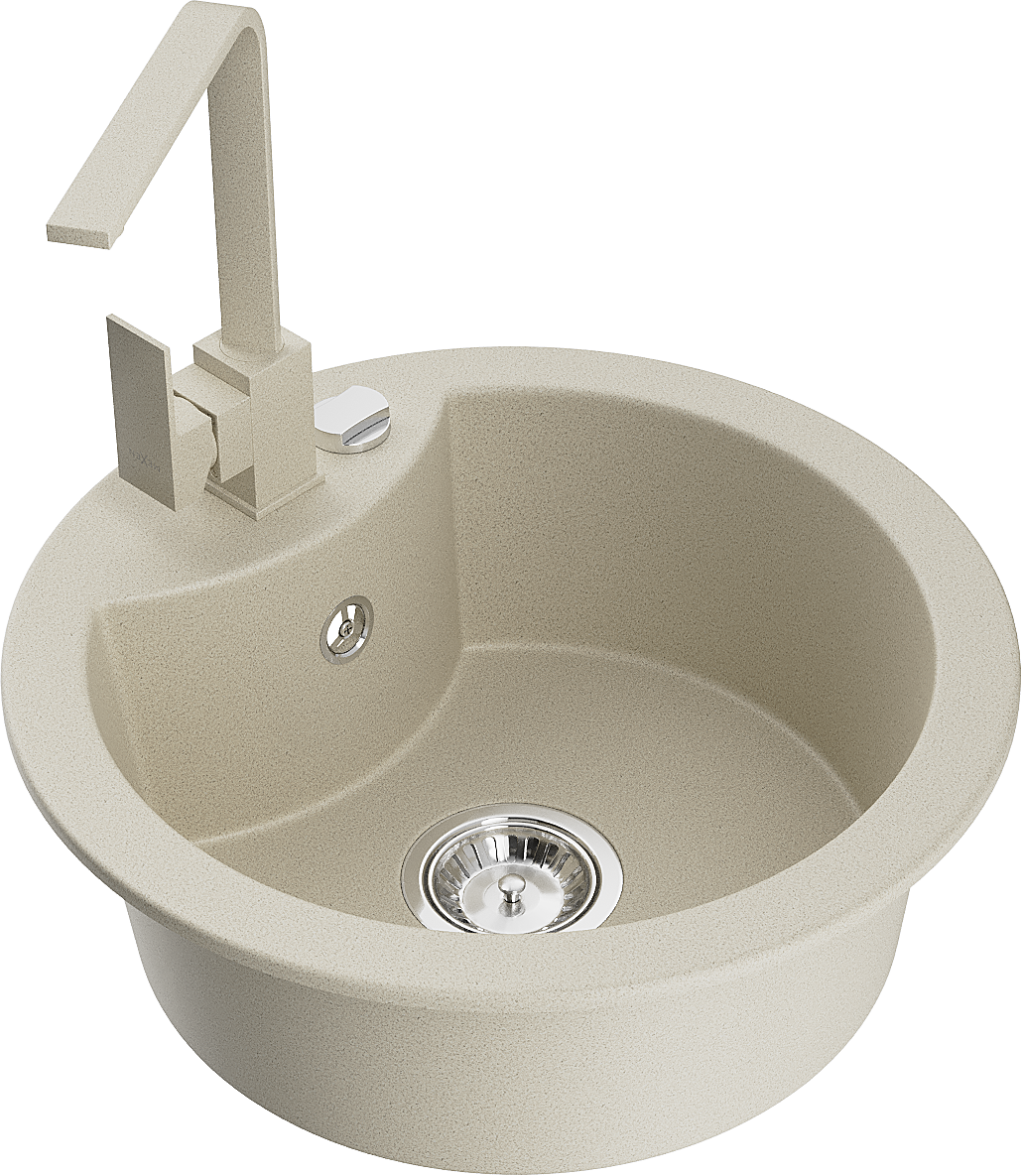 Mexen Diego granite sink single bowl with Rita kitchen tap, beige - 6512-69-670300-69