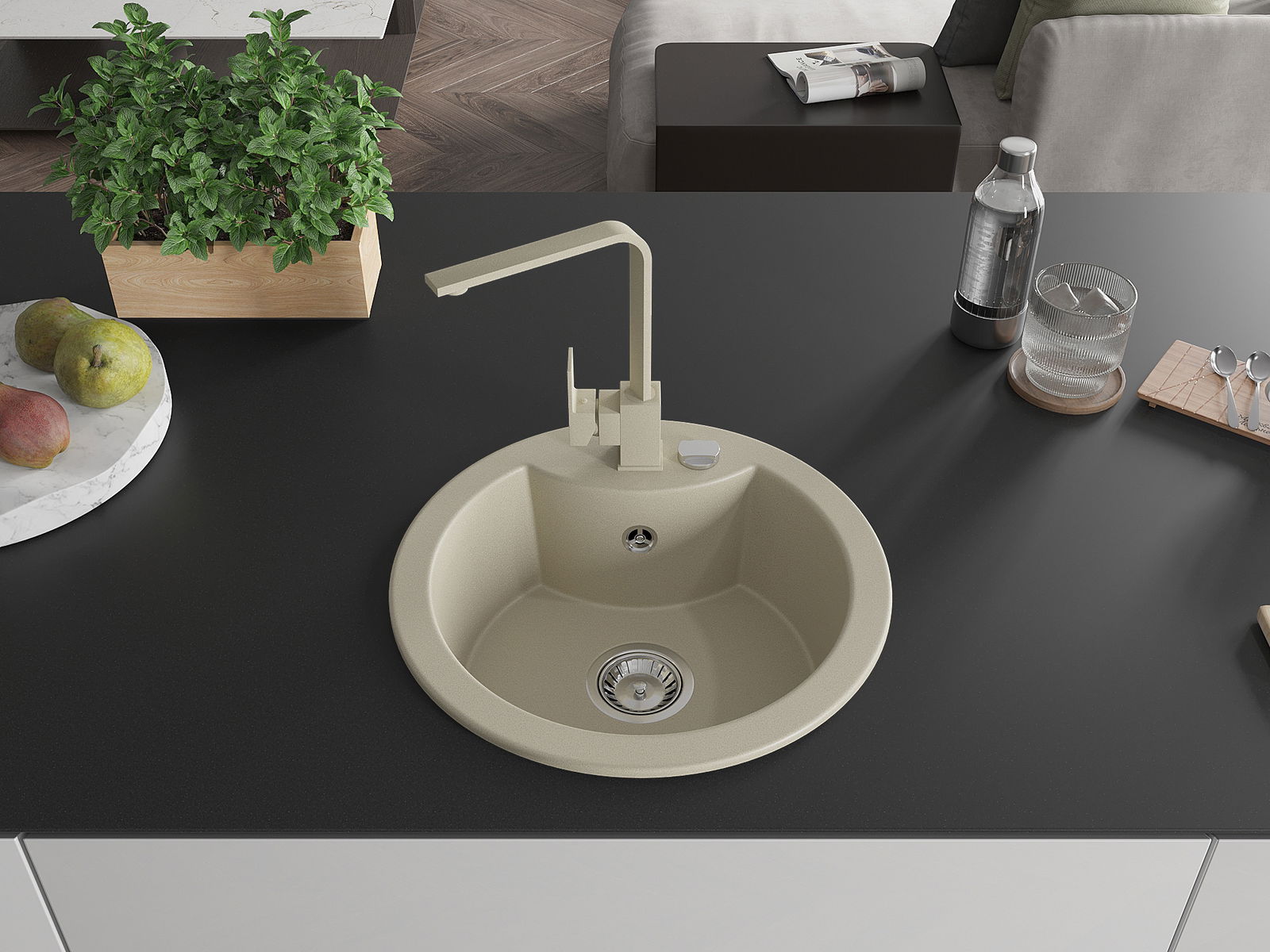 The sink is made of high quality granite. It is an elegant and, above all, practical complement to every kitchen, regardless of its style. High quality and granite durability ensure many years of use.