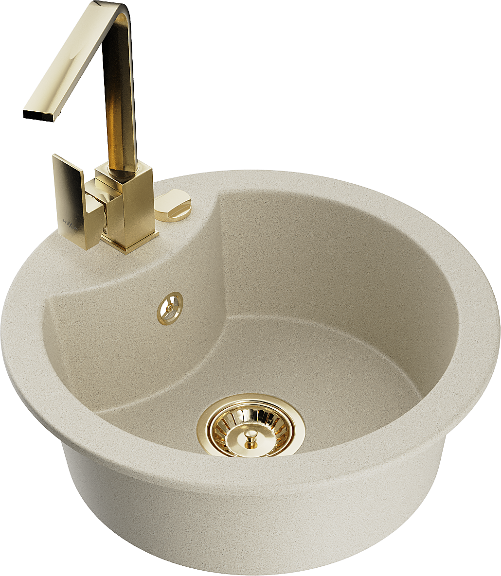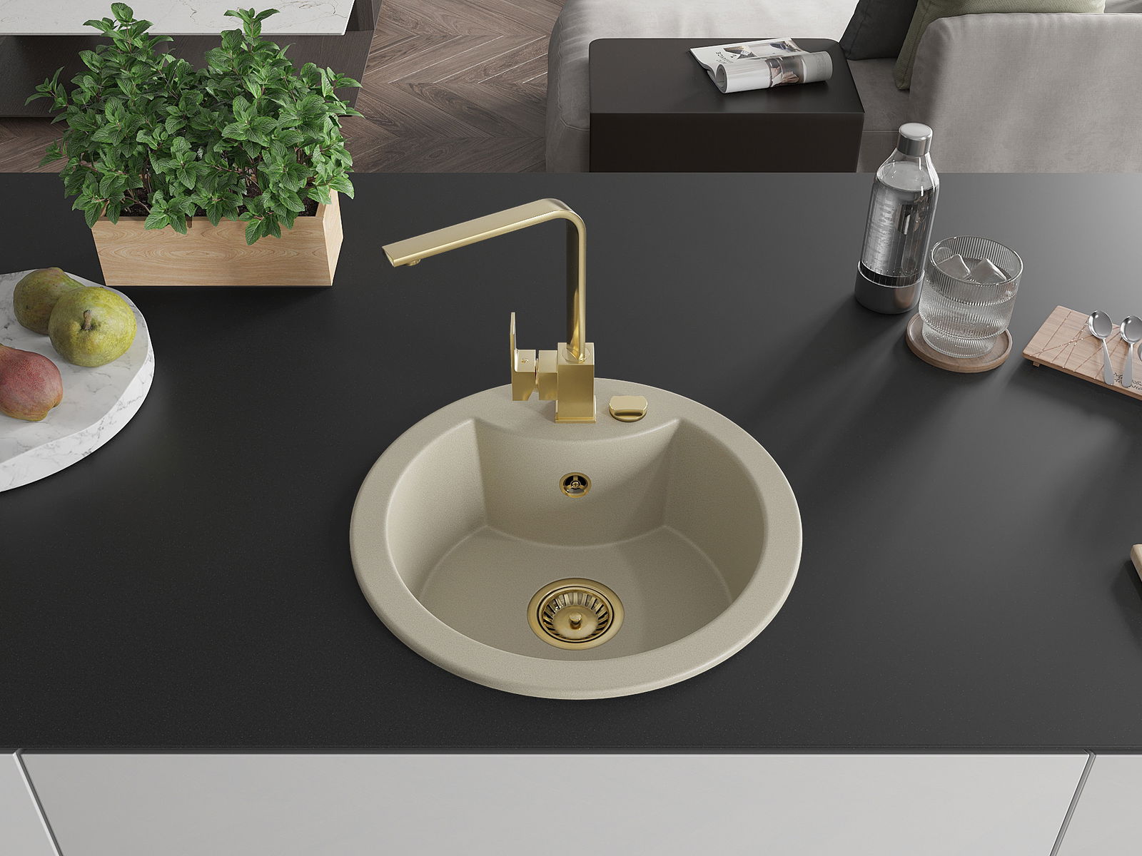 Mexen Diego 1-bowl granite sink with Rita kitchen faucet, beige - 6512-69-670300-50