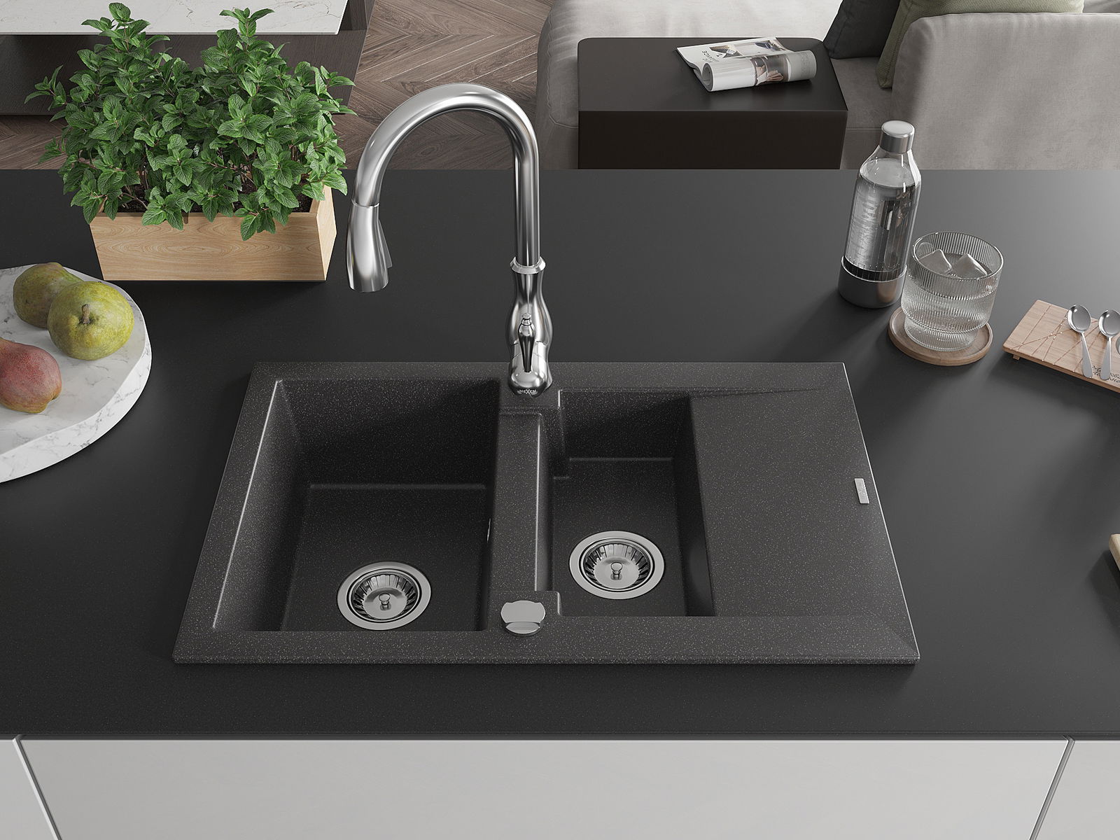 The sink is made of high quality granite. It is an elegant and, above all, practical complement to every kitchen, regardless of its style. High quality and granite durability ensure many years of use.