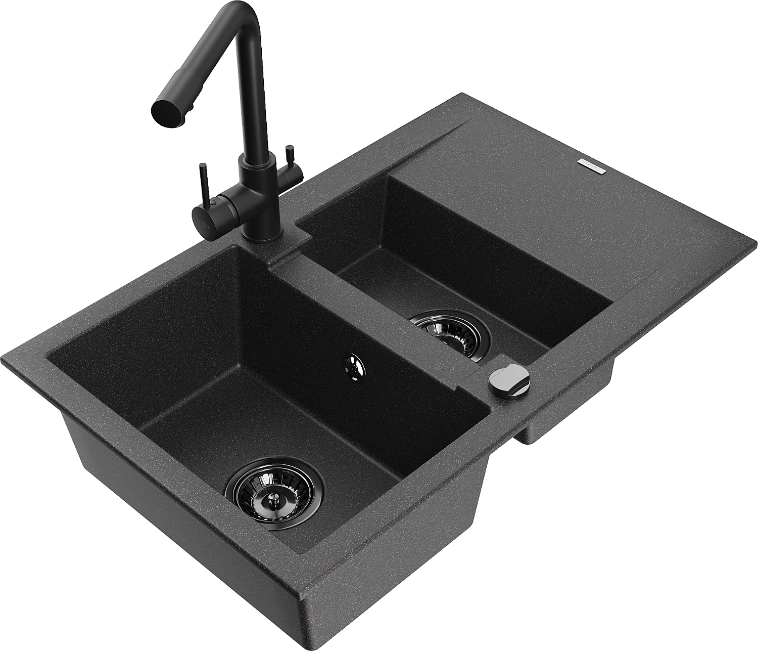 Mexen Gaspar granite sink 1.5-bowl with drainer and Duero kitchen tap, black speckled - 6507-76-671600-70-B