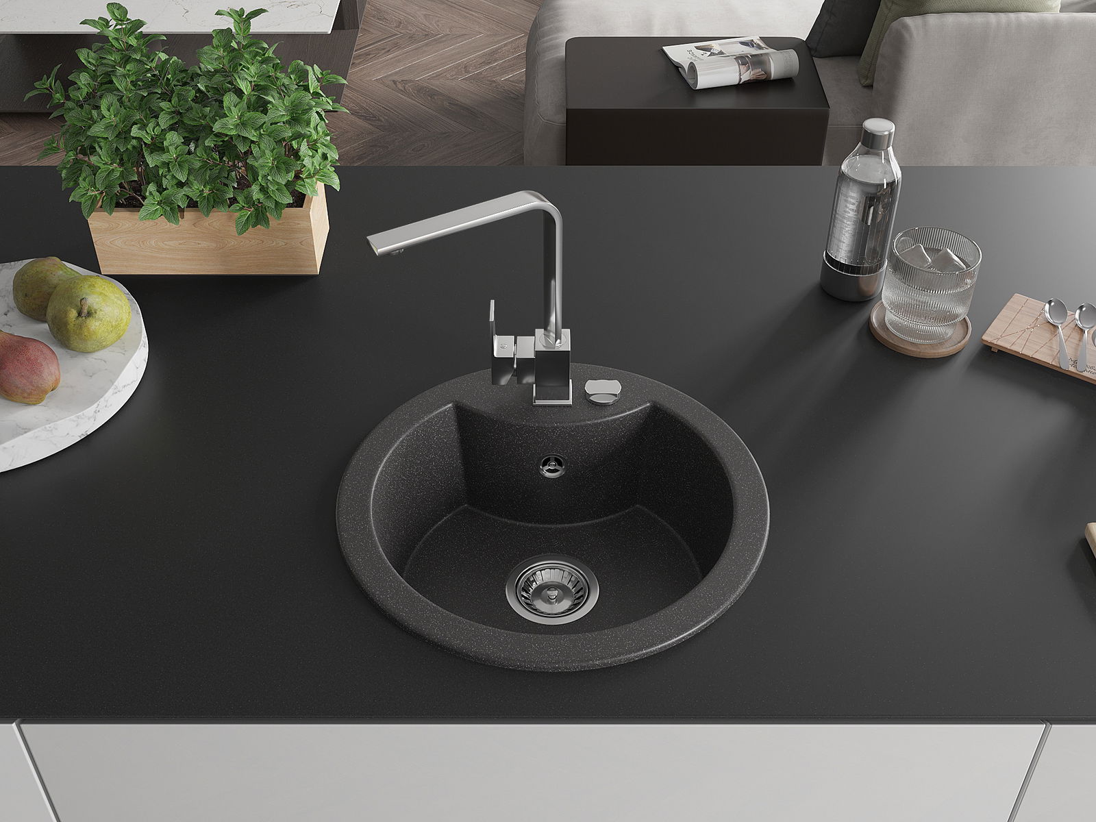 The sink is made of high quality granite. It is an elegant and, above all, practical complement to every kitchen, regardless of its style. High quality and granite durability ensure many years of use.