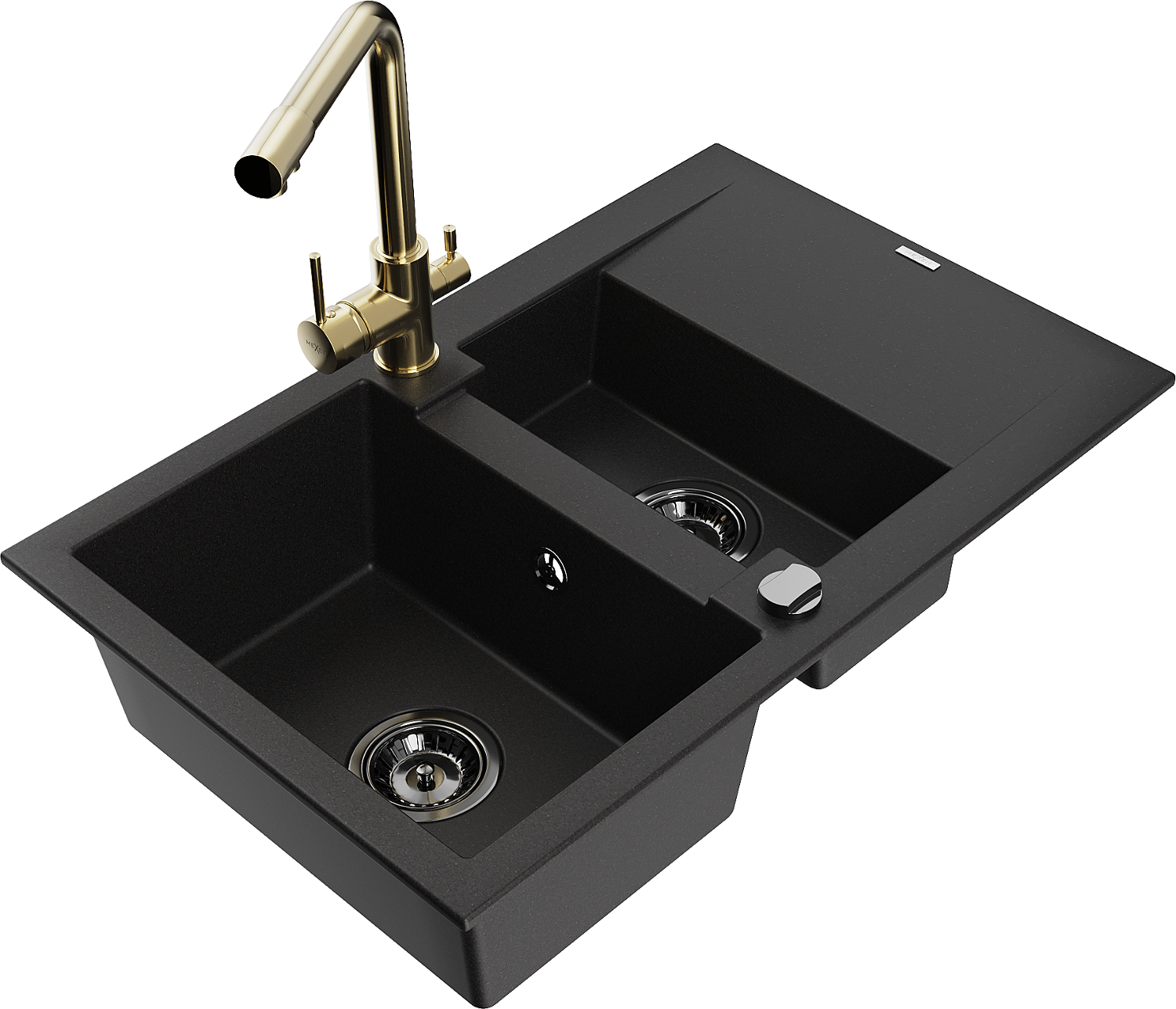 Mexen Gaspar granite sink 1.5-bowl with drainer and Duero kitchen tap, black - 6507-77-671600-50-B