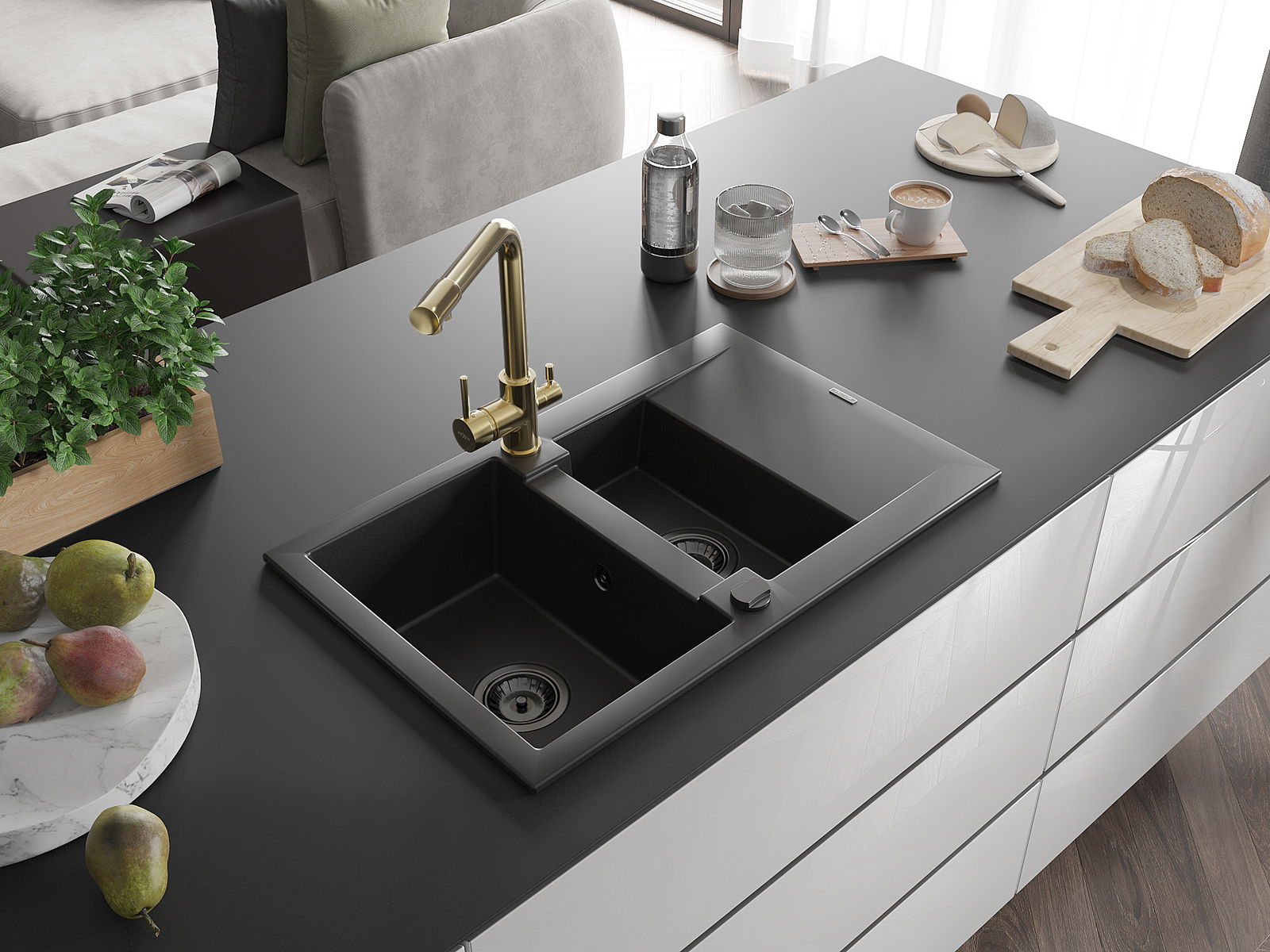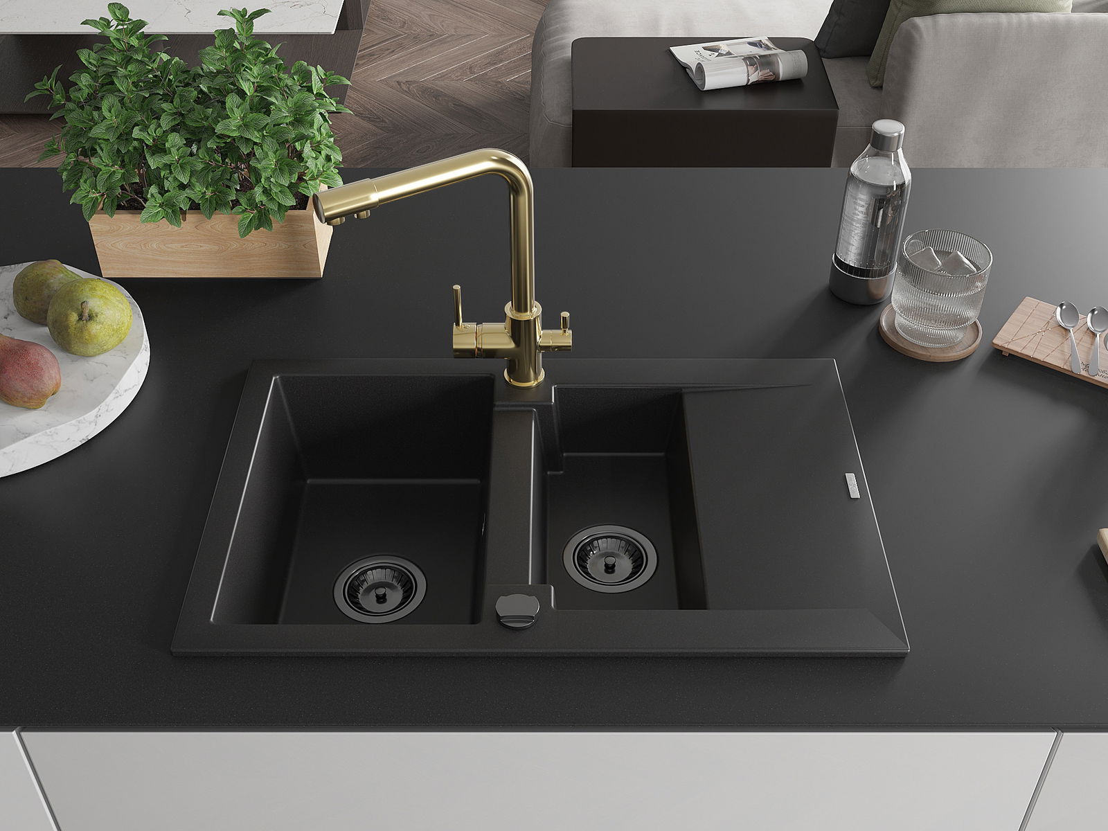 The sink is made of high quality granite. It is an elegant and, above all, practical complement to every kitchen, regardless of its style. High quality and granite durability ensure many years of use.