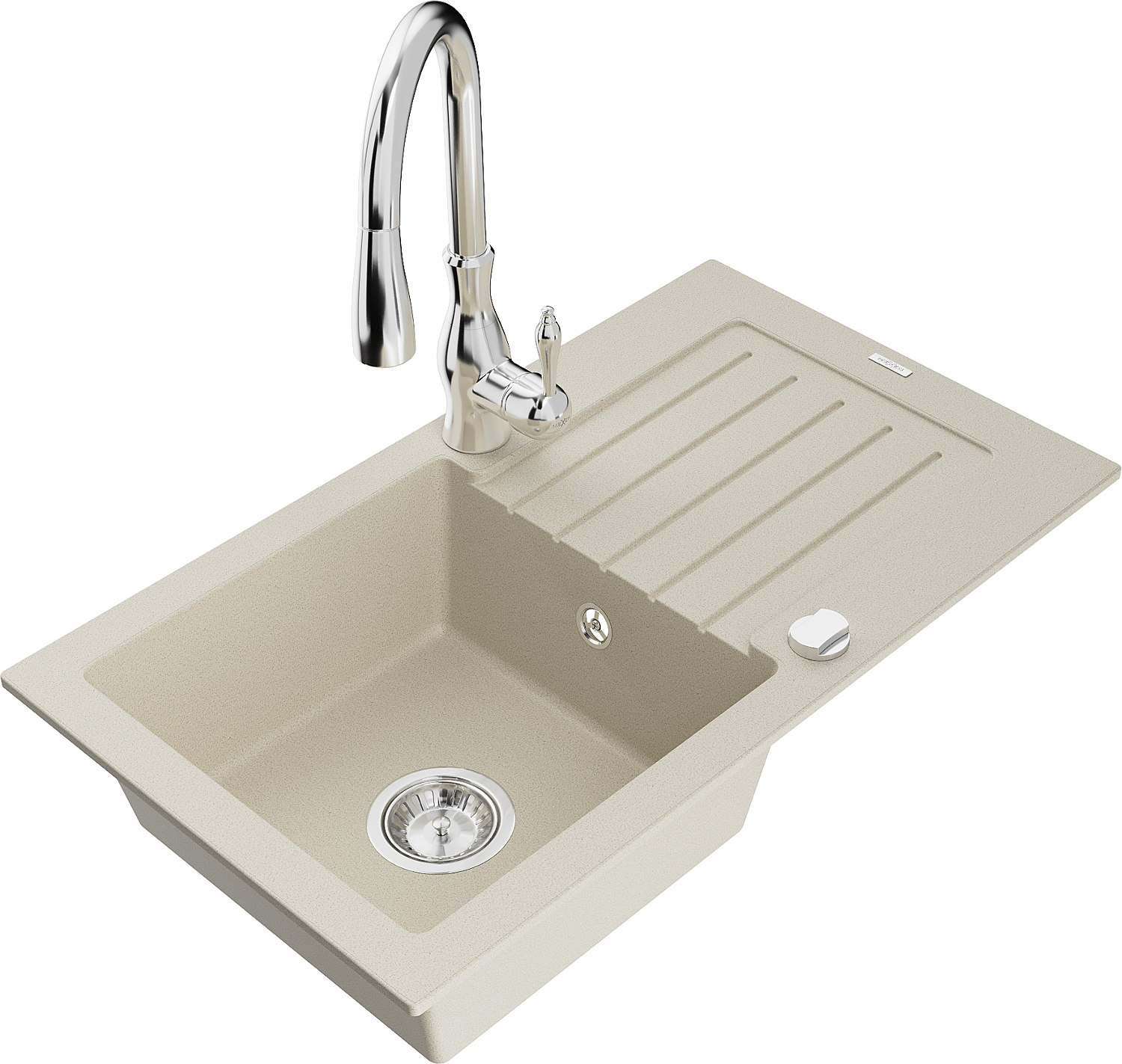 Mexen Pablo single-bowl granite sink with drainer and Savita kitchen tap, beige - 6510-69-672601-00