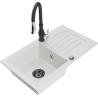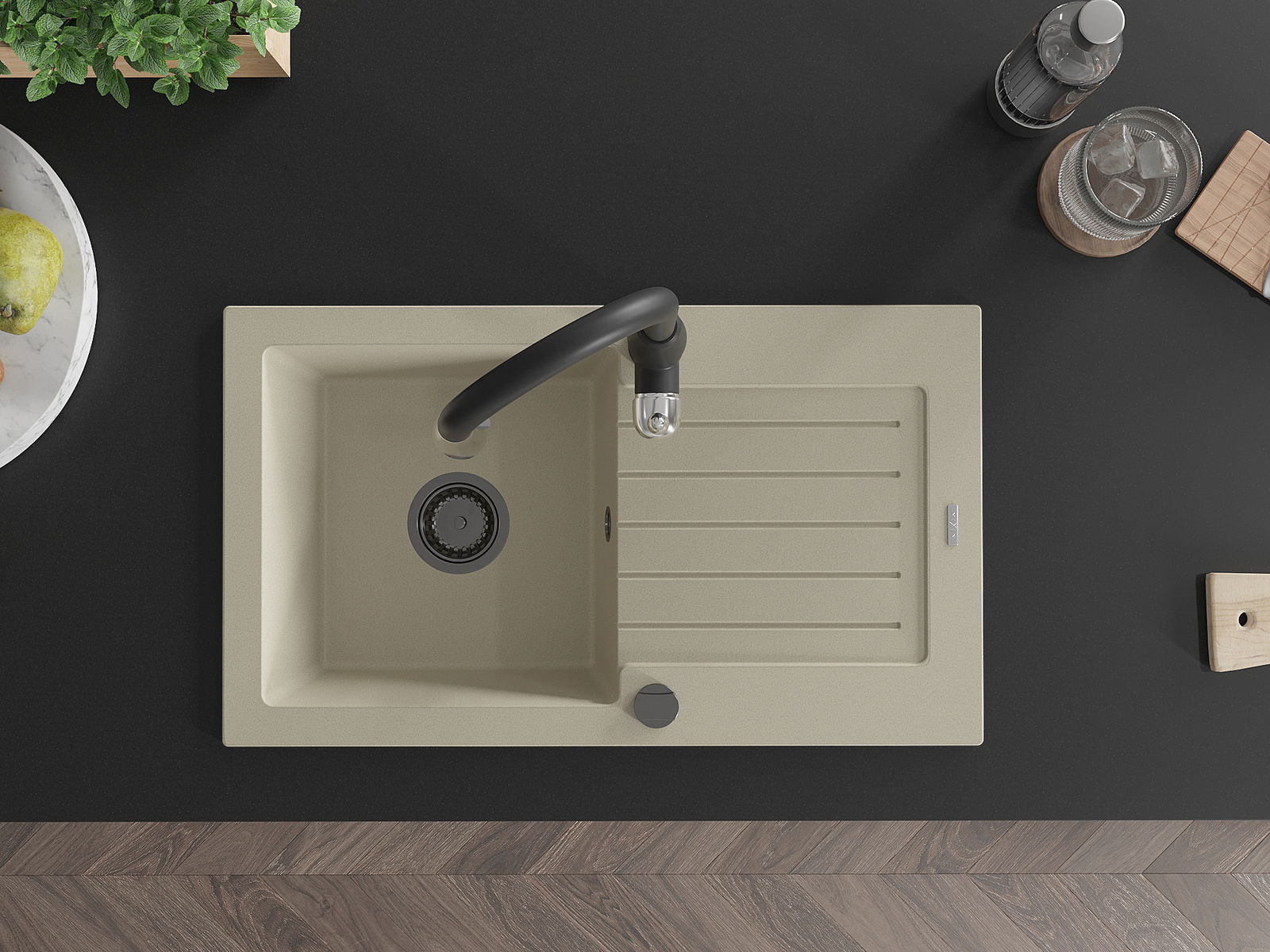 Mexen Pablo granite sink, 1-bowl with drainer and Savita kitchen tap, beige - 6510-69-672601-70