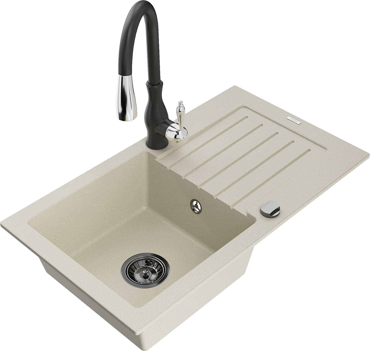 The sink is made of high quality granite. It is an elegant and, above all, practical complement to every kitchen, regardless of its style. High quality and granite durability ensure many years of use.