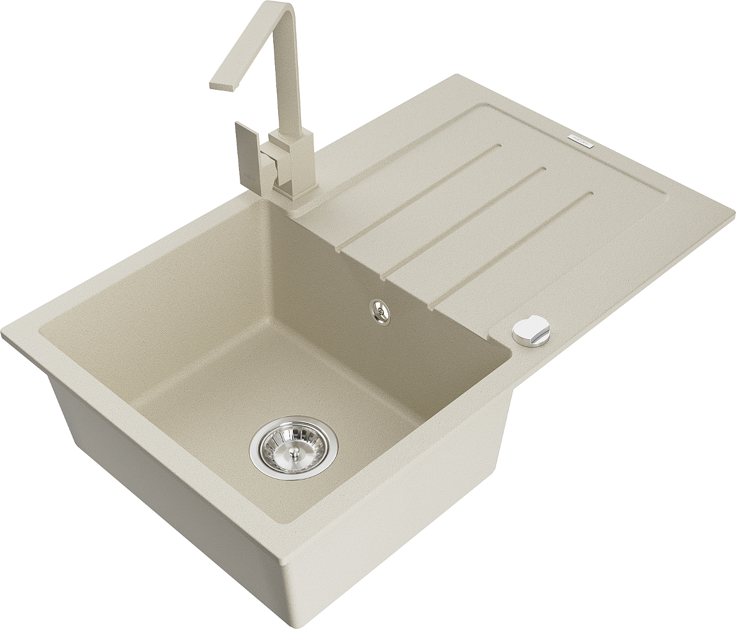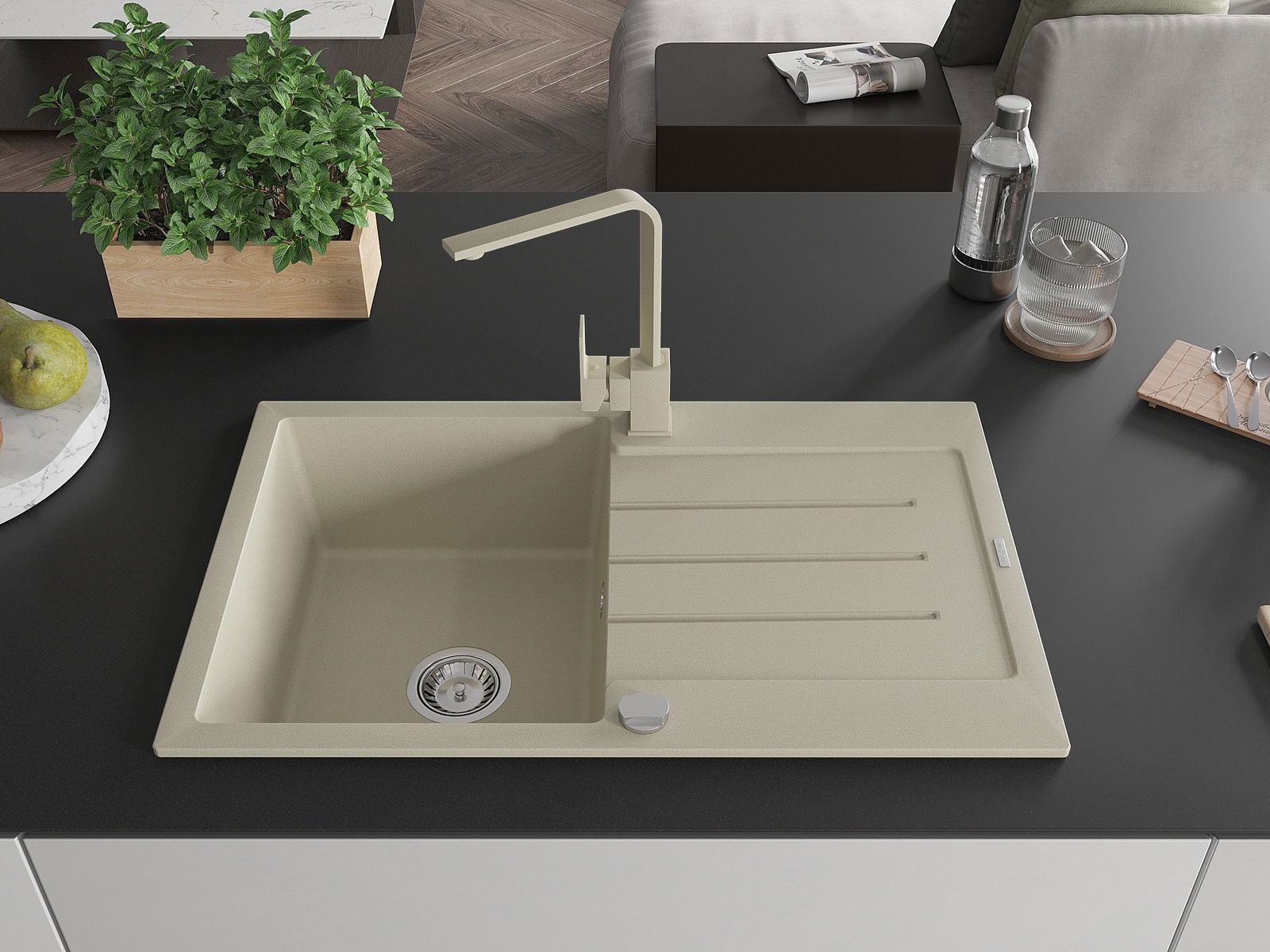 Mexen Bruno 1-bowl granite sink with drainer and Rita kitchen tap, beige - 6513-69-670300-69
