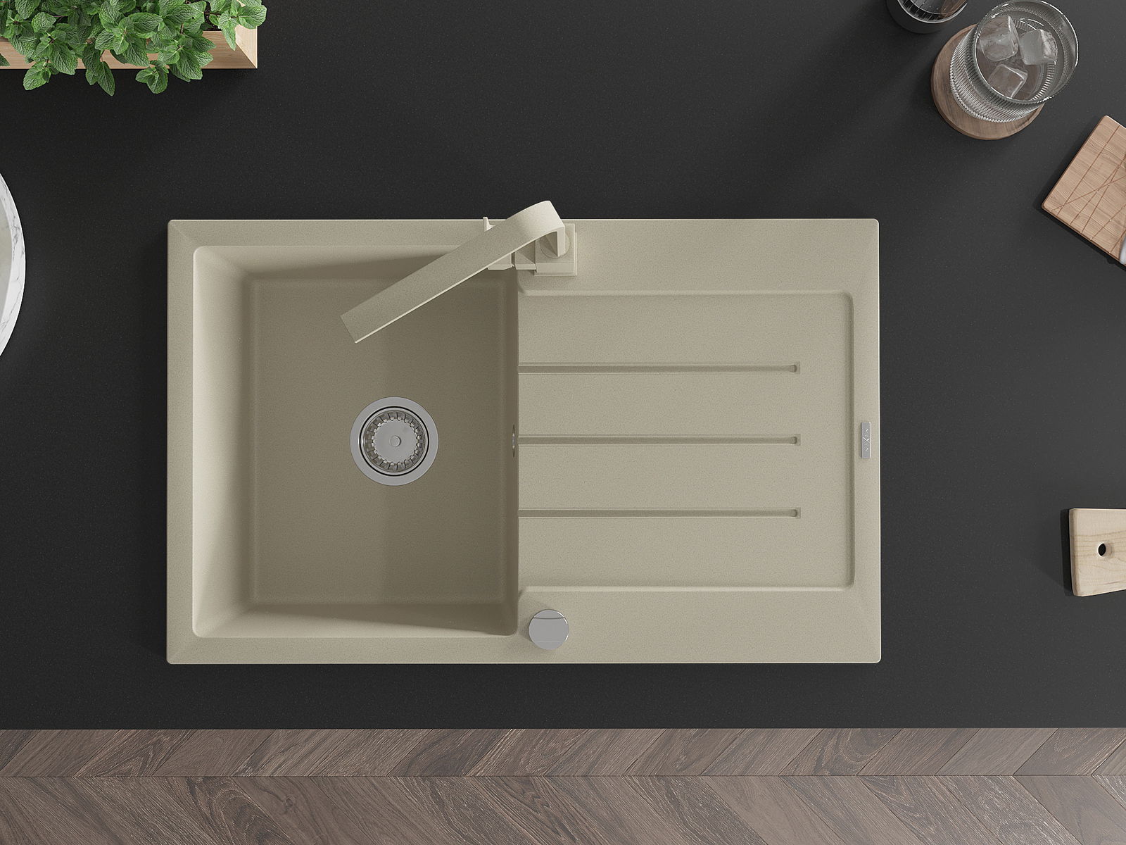 The sink is made of high quality granite. It is an elegant and, above all, practical complement to every kitchen, regardless of its style. High quality and granite durability ensure many years of use.