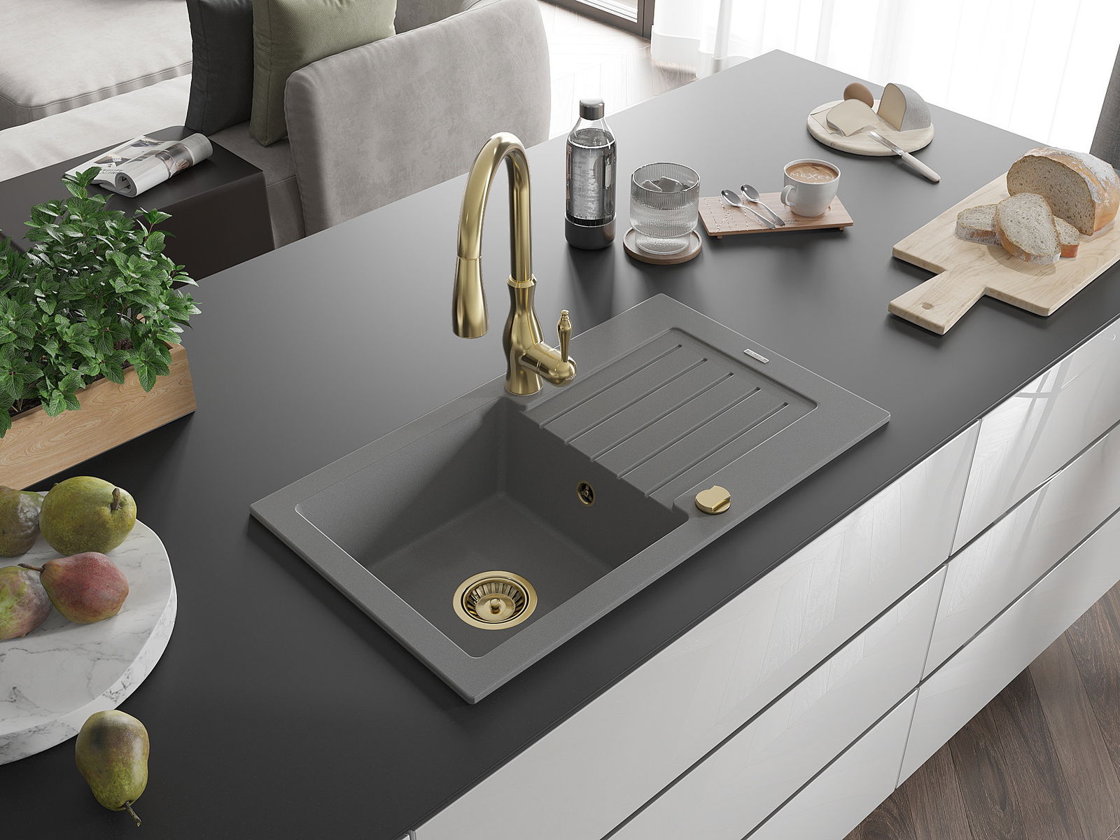 The sink is made of high quality granite. It is an elegant and, above all, practical complement to every kitchen, regardless of its style. High quality and granite durability ensure many years of use.
