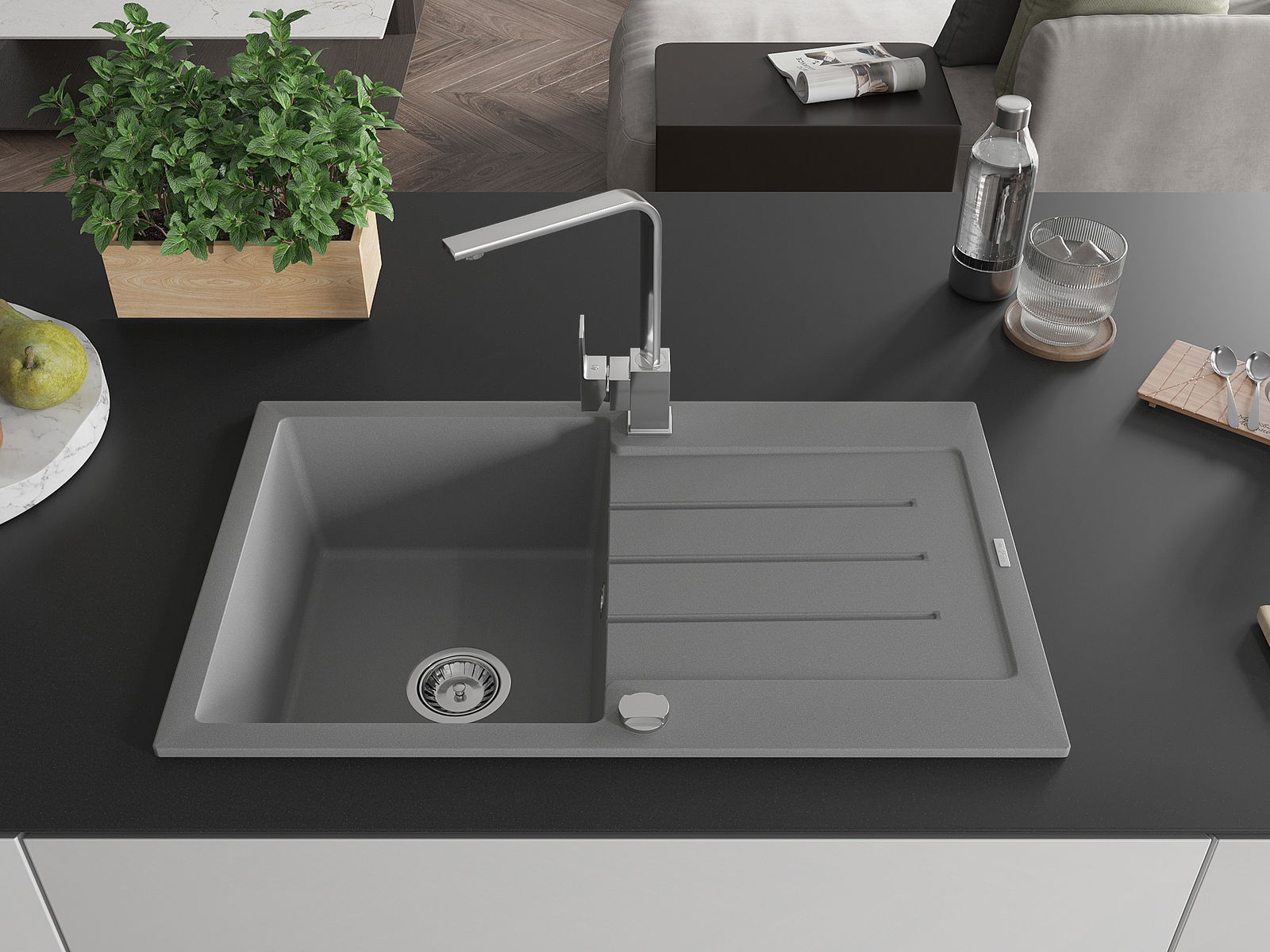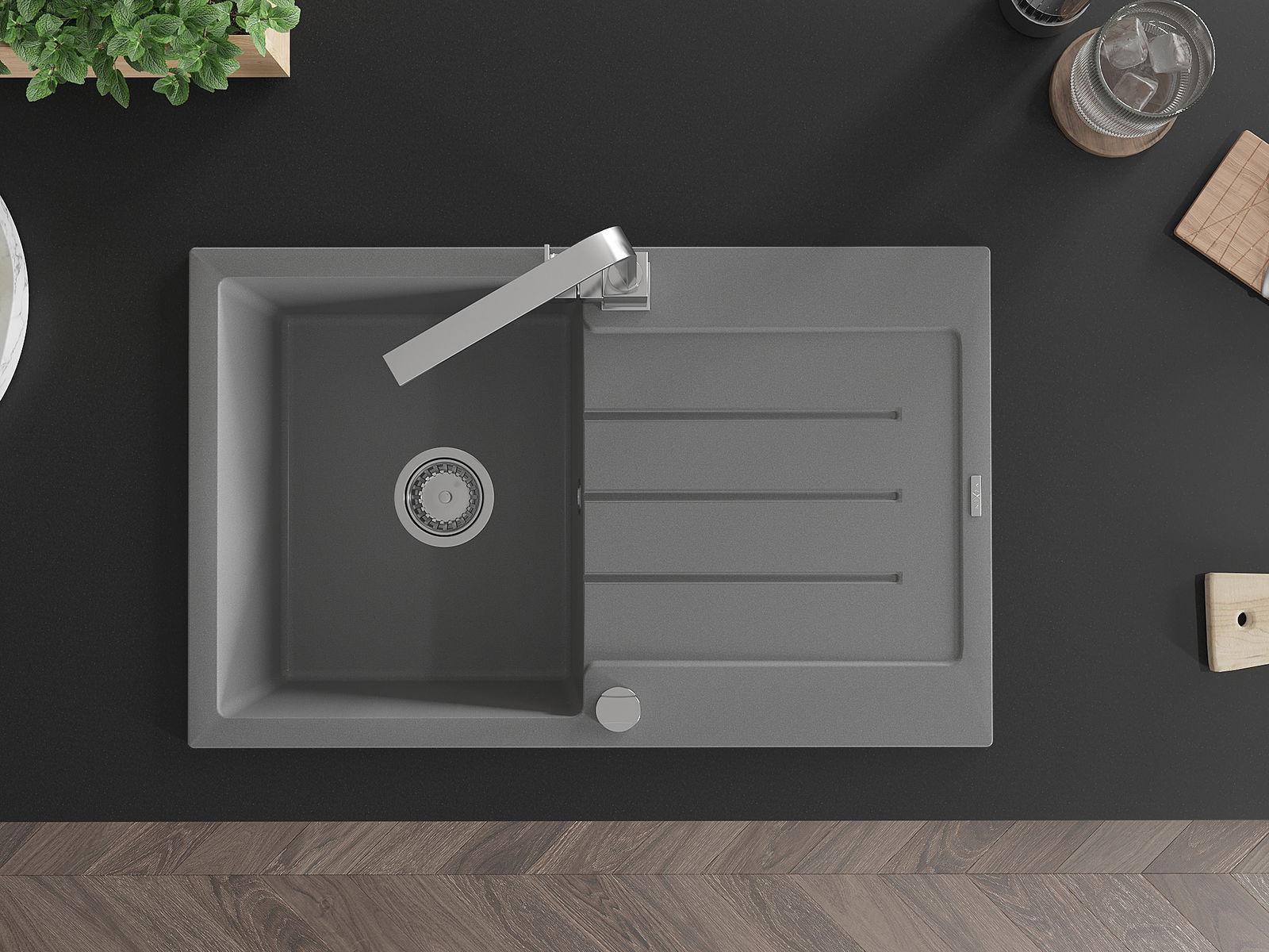The sink is made of high quality granite. It is an elegant and, above all, practical complement to every kitchen, regardless of its style. High quality and granite durability ensure many years of use.