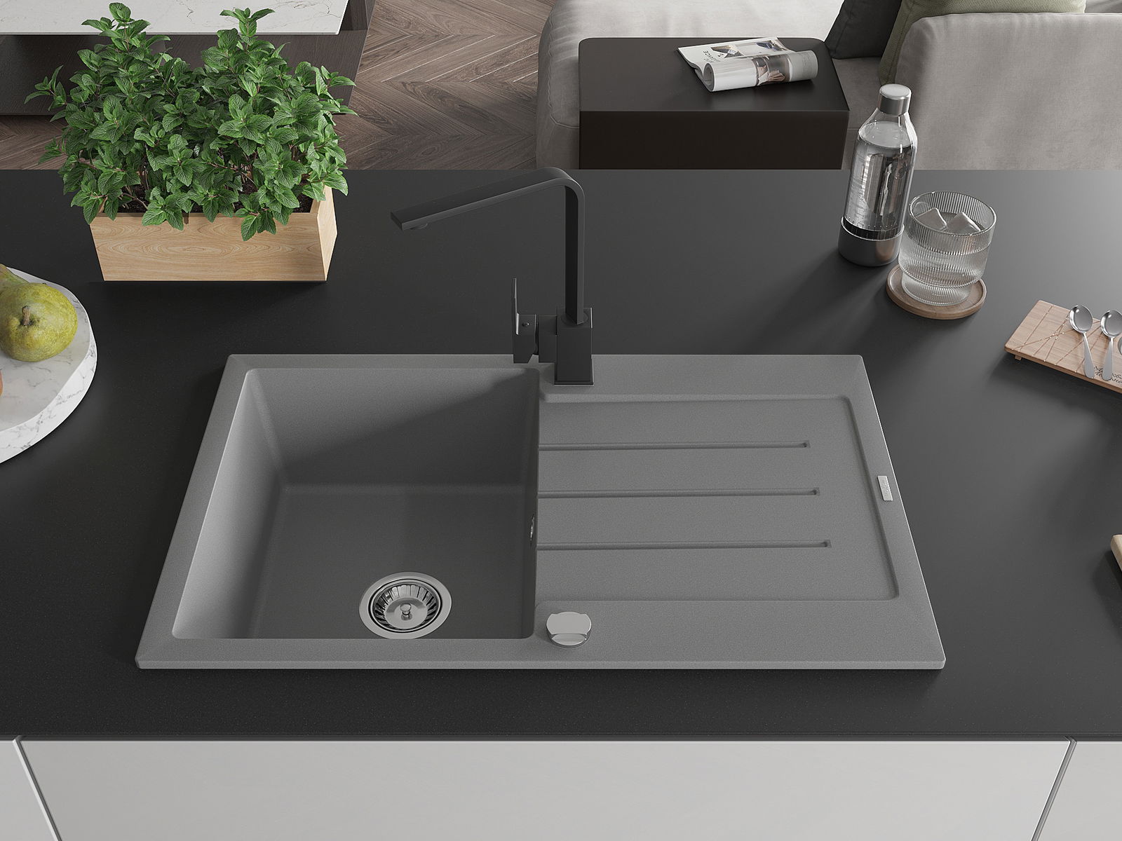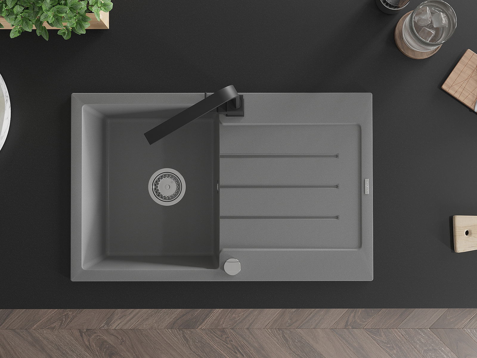 The sink is made of high quality granite. It is an elegant and, above all, practical complement to every kitchen, regardless of its style. High quality and granite durability ensure many years of use.