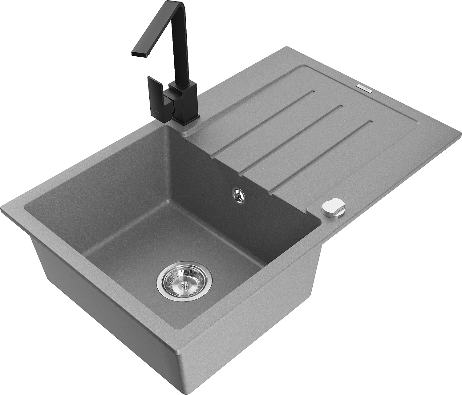 Mexen Bruno granite sink 1-bowl with drainer and Rita kitchen tap, grey - 6513-71-670300-70