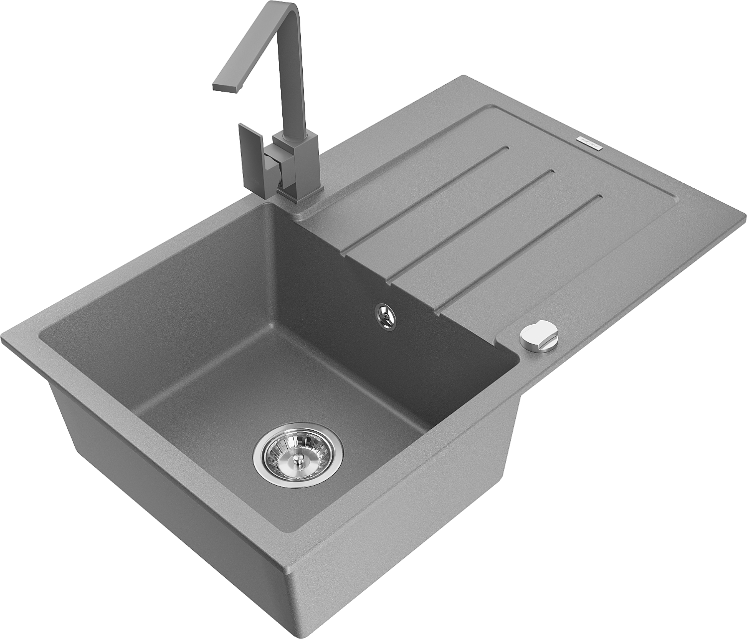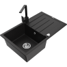 Mexen Bruno granite sink 1-bowl with drainer and Rita kitchen tap, grey - 6513-71-670300-71