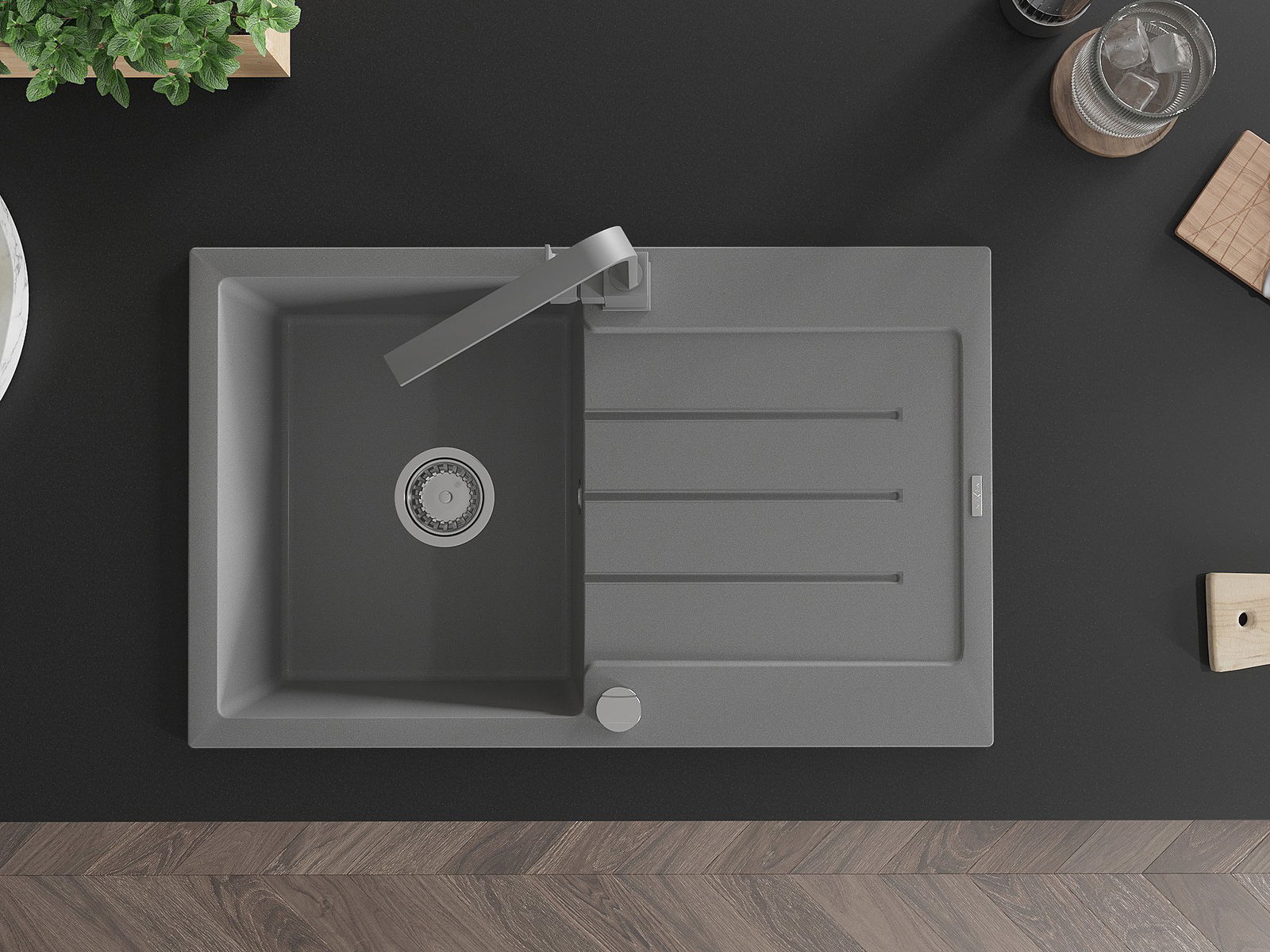 The sink is made of high quality granite. It is an elegant and, above all, practical complement to every kitchen, regardless of its style. High quality and granite durability ensure many years of use.