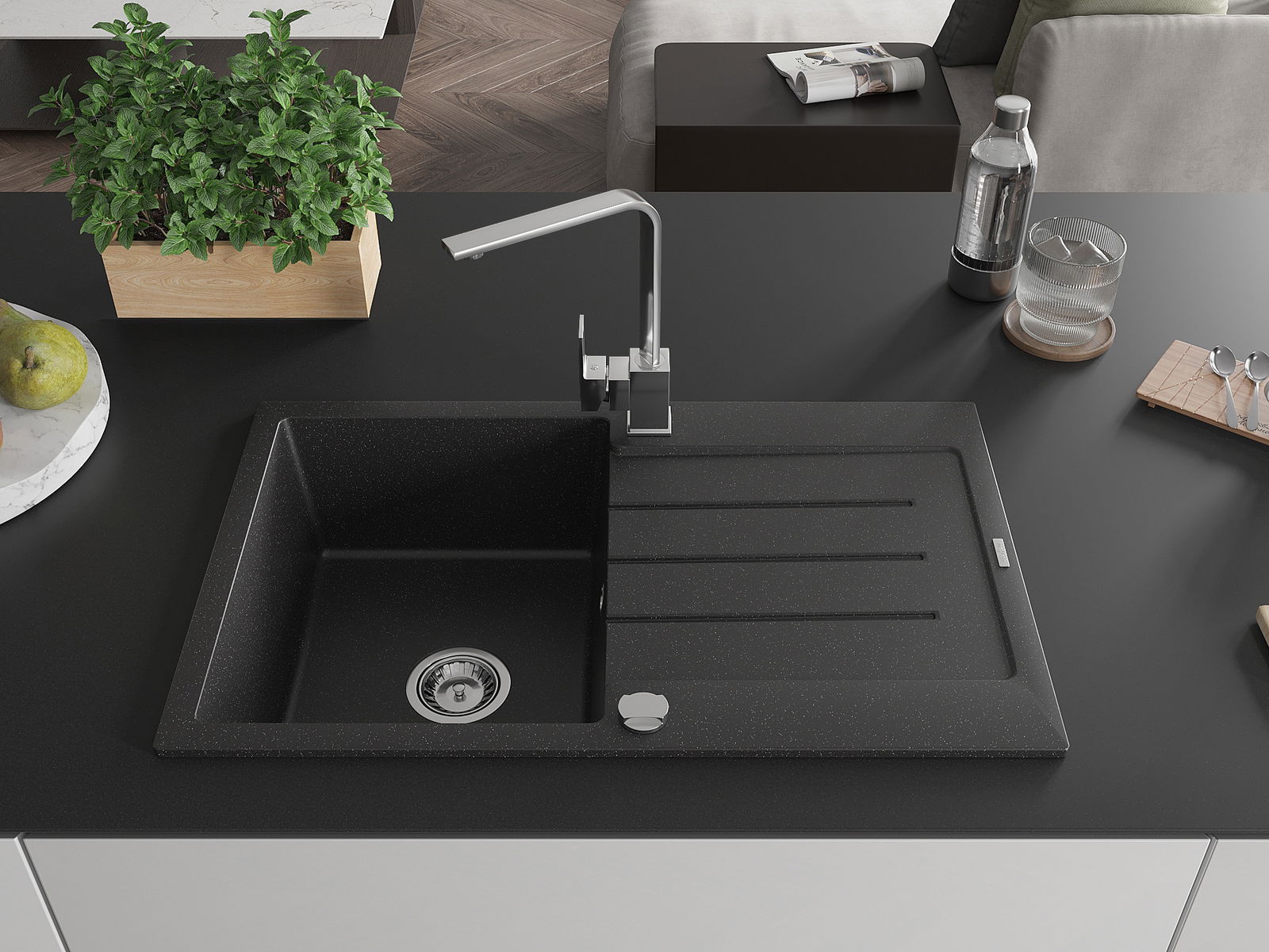 The sink is made of high quality granite. It is an elegant and, above all, practical complement to every kitchen, regardless of its style. High quality and granite durability ensure many years of use.