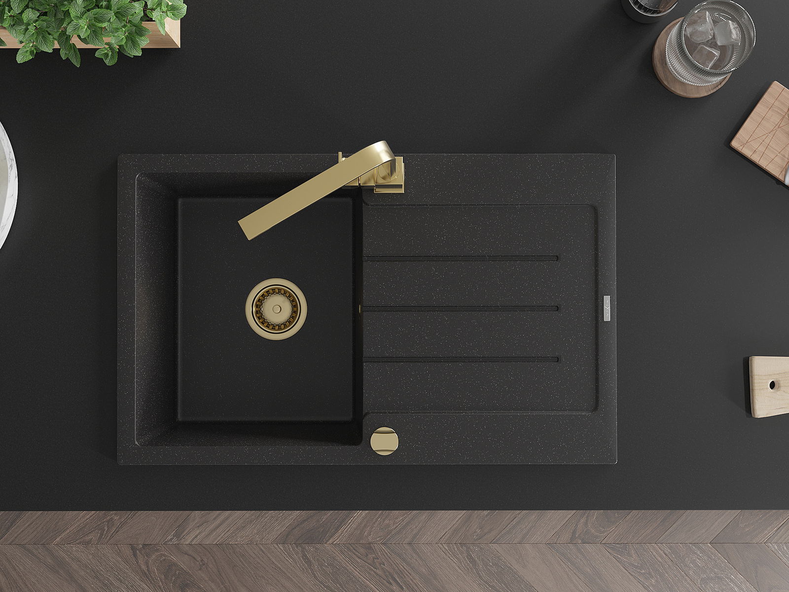 The sink is made of high quality granite. It is an elegant and, above all, practical complement to every kitchen, regardless of its style. High quality and granite durability ensure many years of use.