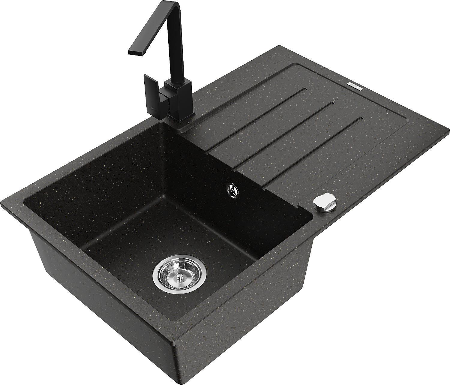 Mexen Bruno granite kitchen sink 1-chamber with drainer and Rita kitchen tap, black/silver metallic - 6513-73-670300-70