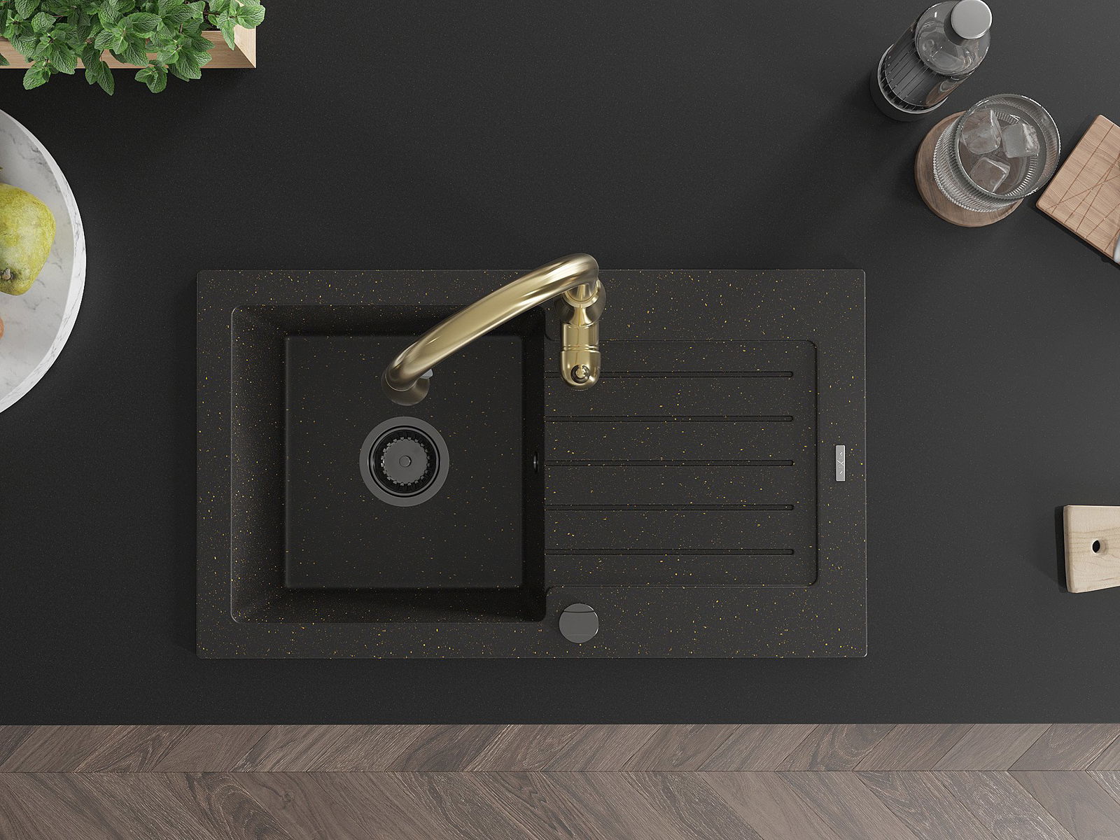 The sink is made of high quality granite. It is an elegant and, above all, practical complement to every kitchen, regardless of its style. High quality and granite durability ensure many years of use.