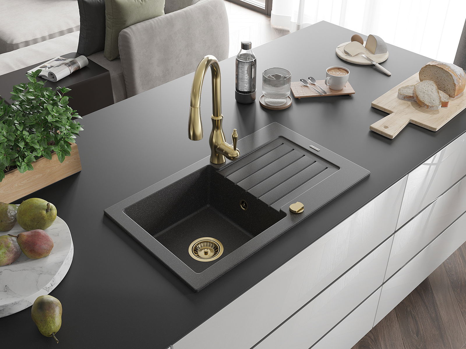 The sink is made of high quality granite. It is an elegant and, above all, practical complement to every kitchen, regardless of its style. High quality and granite durability ensure many years of use.