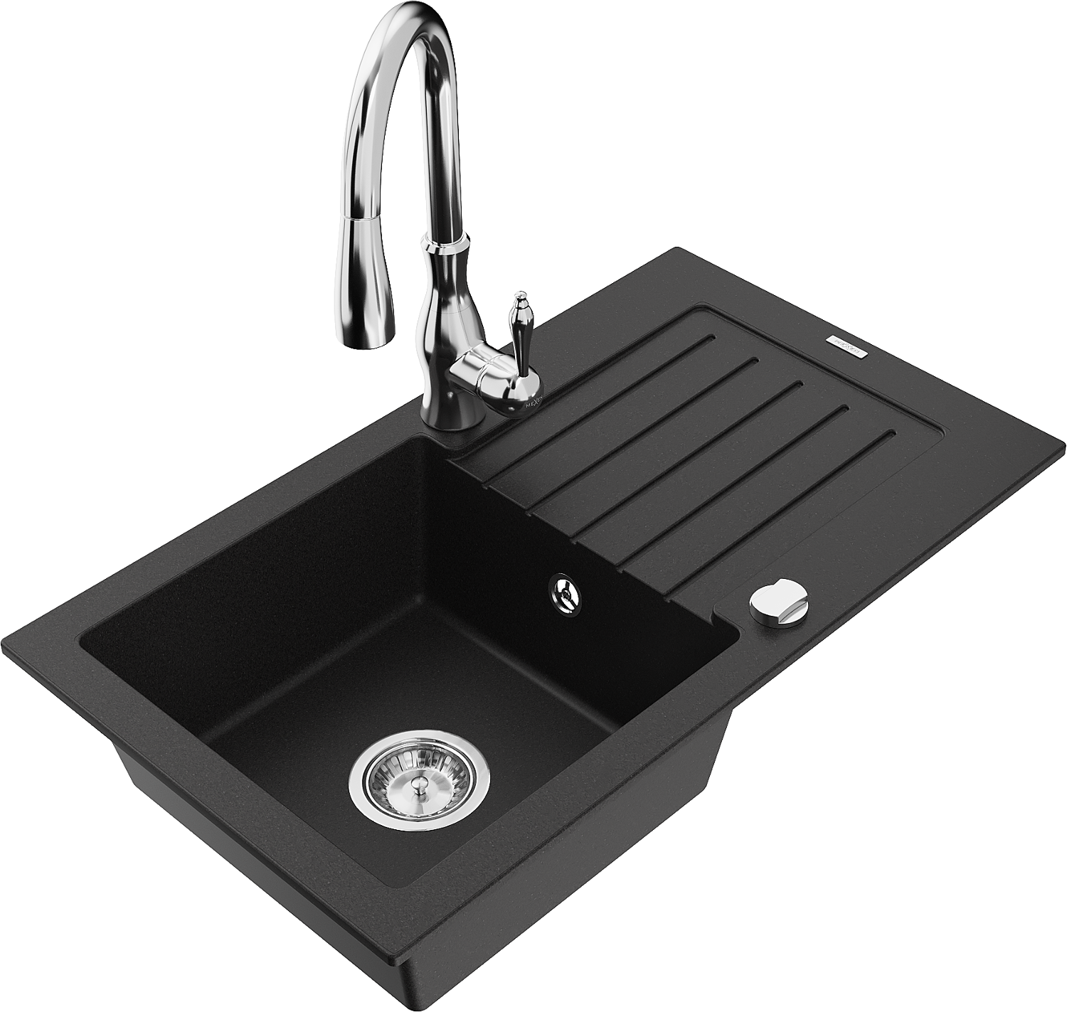 Mexen Pablo single-bowl granite sink with drainer and Savita kitchen tap, black - 6510-77-672601-00