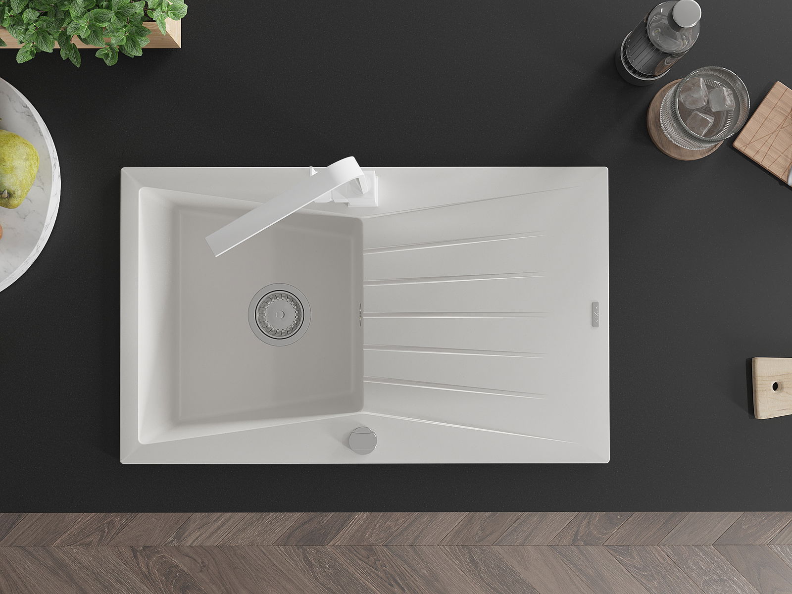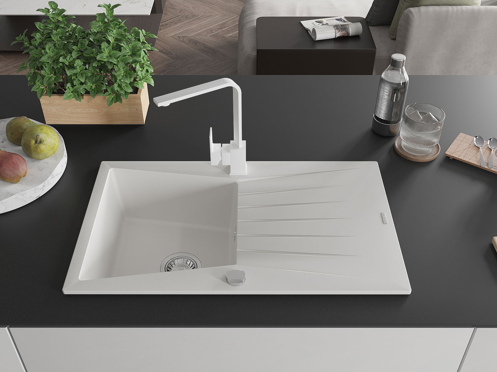 The surface of the sink is resistant to stains and discoloration, thanks to which it is easy to clean and retains its color for a long time. Aesthetic and practically complementing every kitchen.