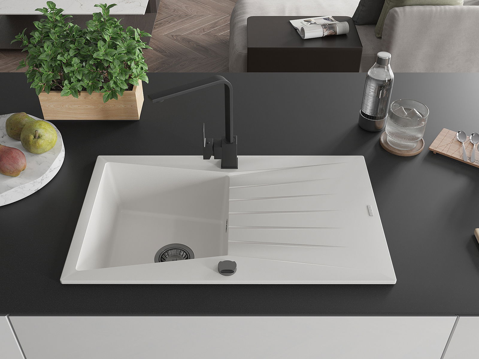 The surface of the sink is resistant to stains and discoloration, thanks to which it is easy to clean and retains its color for a long time. Aesthetic and practically complementing every kitchen.