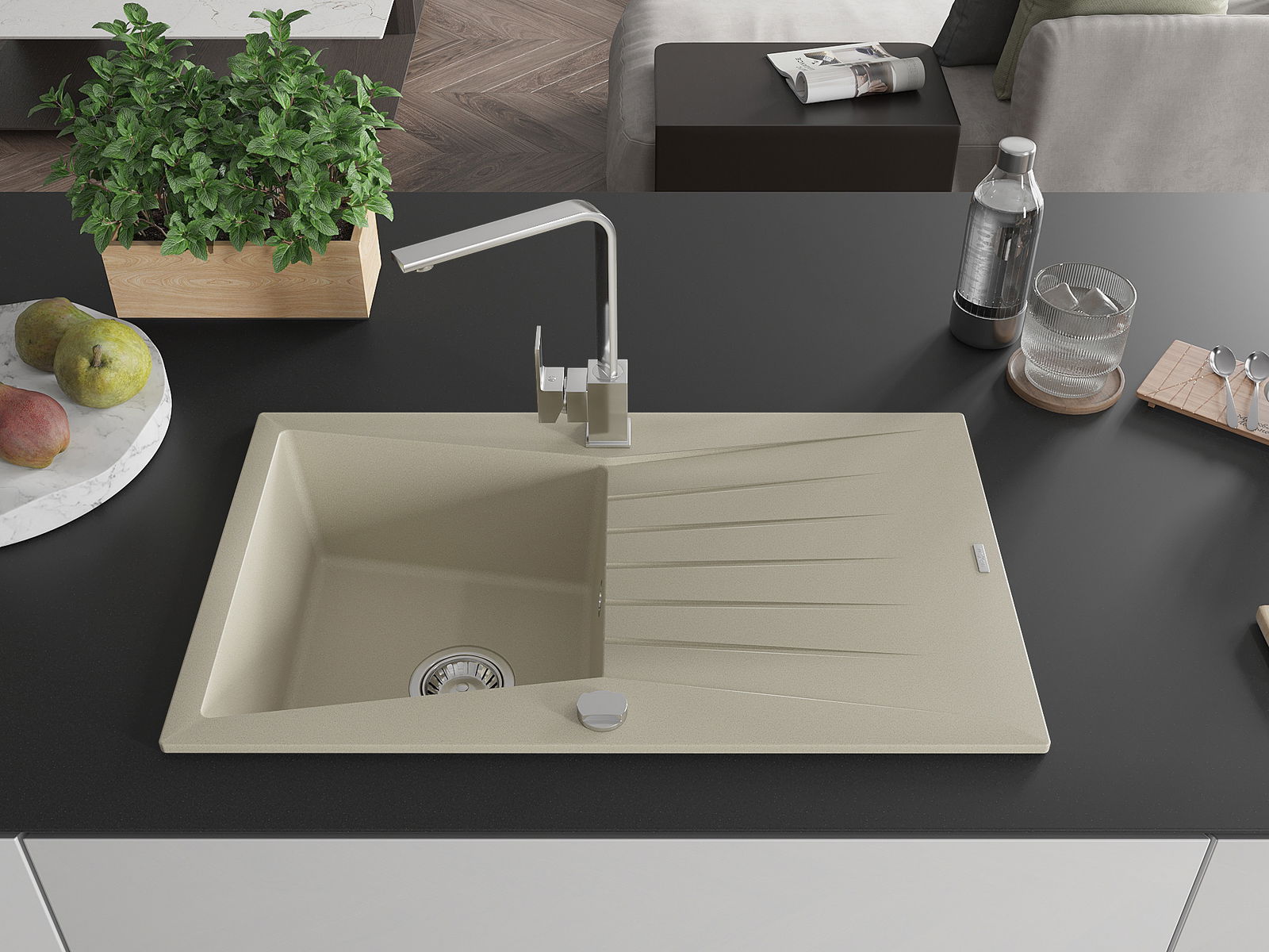 The sink is made of high quality granite. It is an elegant and, above all, practical complement to every kitchen, regardless of its style. High quality and granite durability ensure many years of use.