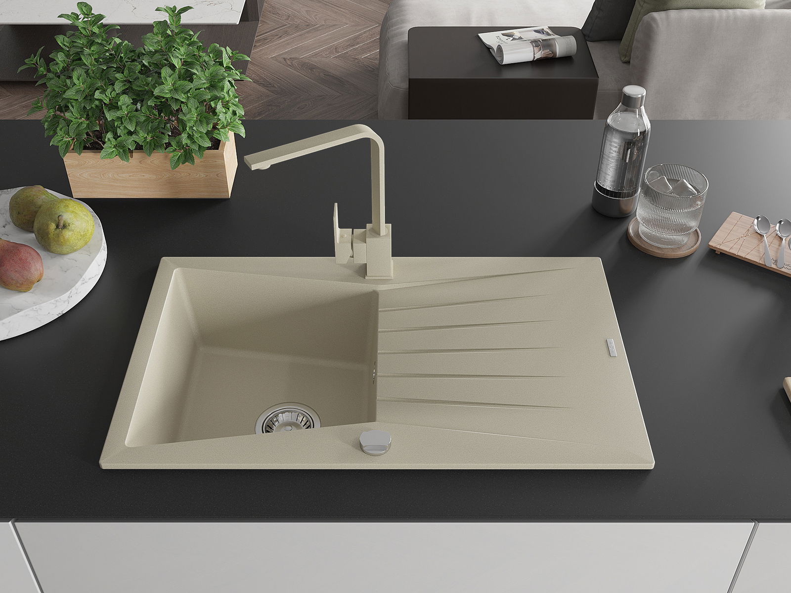 The sink is made of high quality granite. It is an elegant and, above all, practical complement to every kitchen, regardless of its style. High quality and granite durability ensure many years of use.