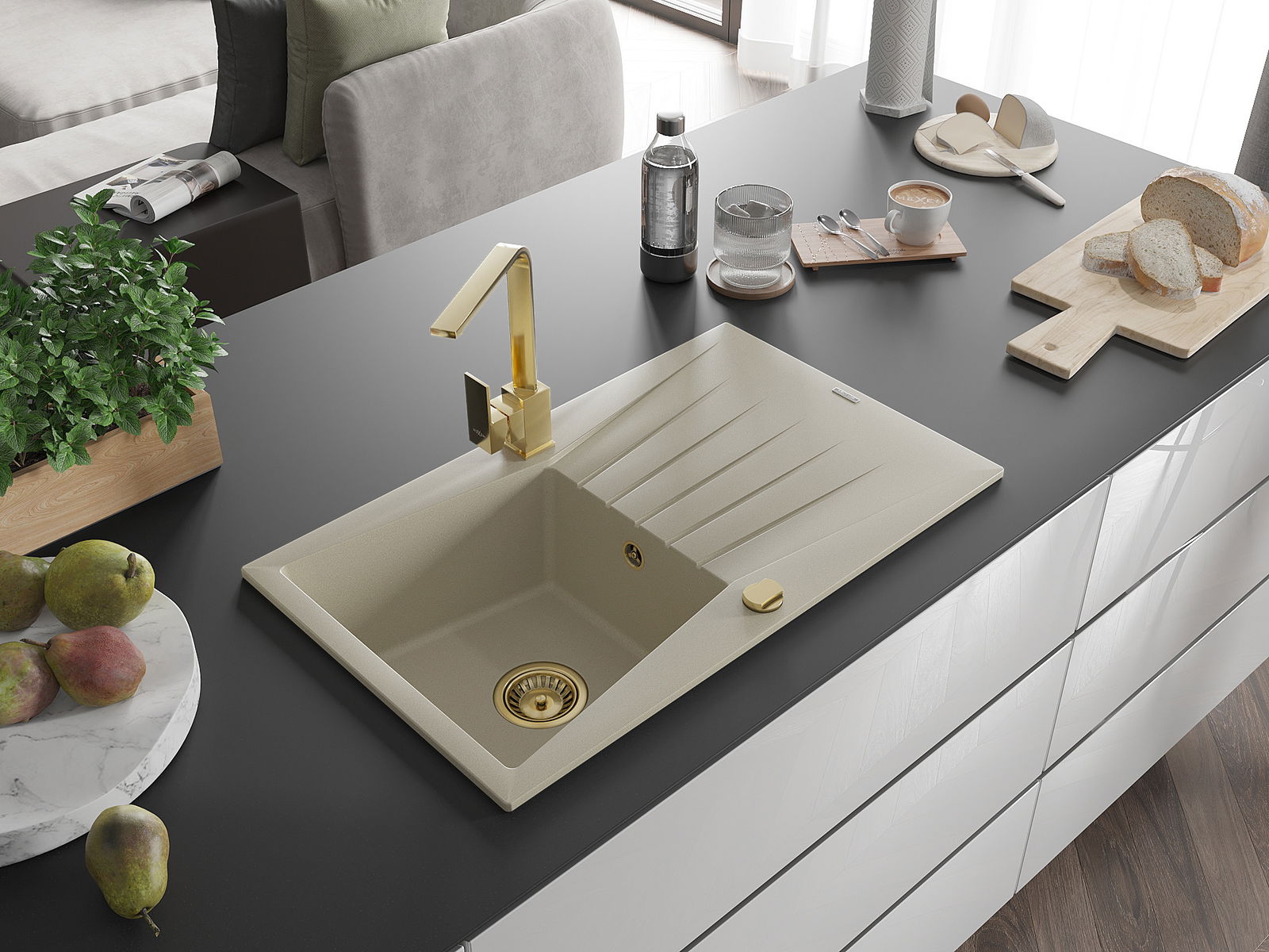 The surface of the sink is resistant to stains and discoloration, thanks to which it is easy to clean and retains its color for a long time. Aesthetic and practically complementing every kitchen.