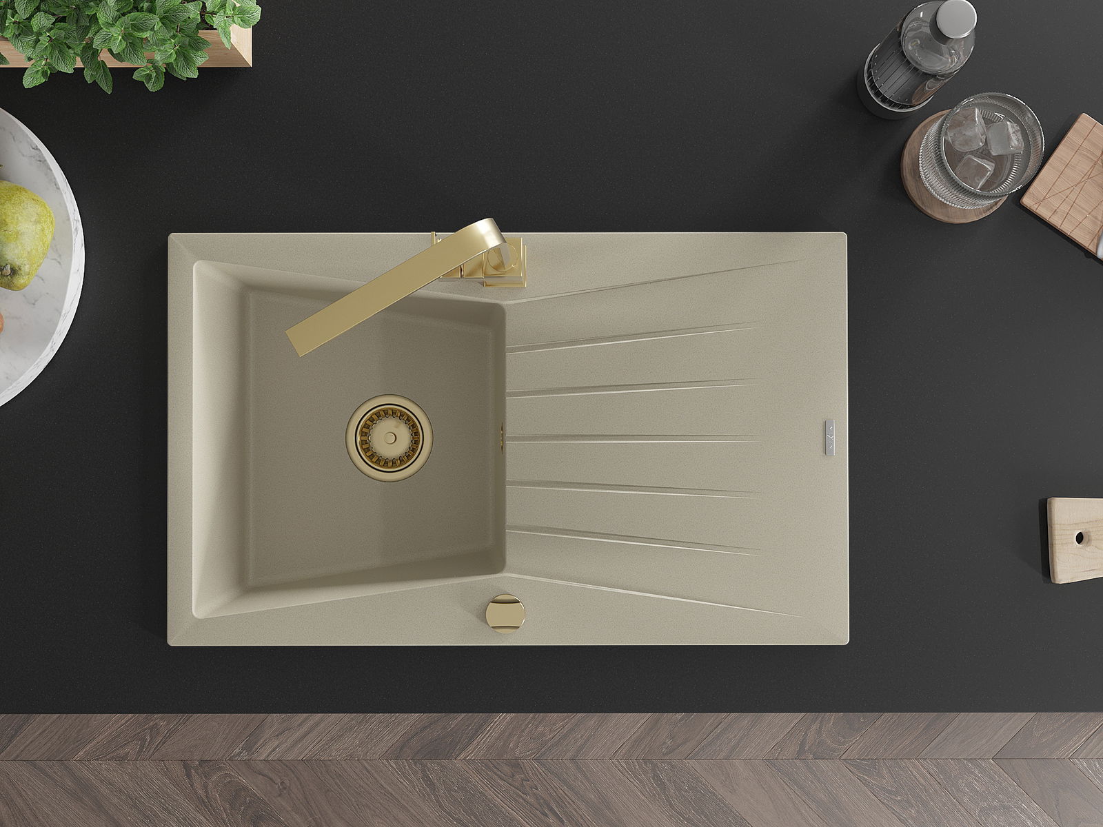 Mexen Cesar 1-bowl granite sink with drainer and kitchen tap Rita, beige - 6514-69-670300-50