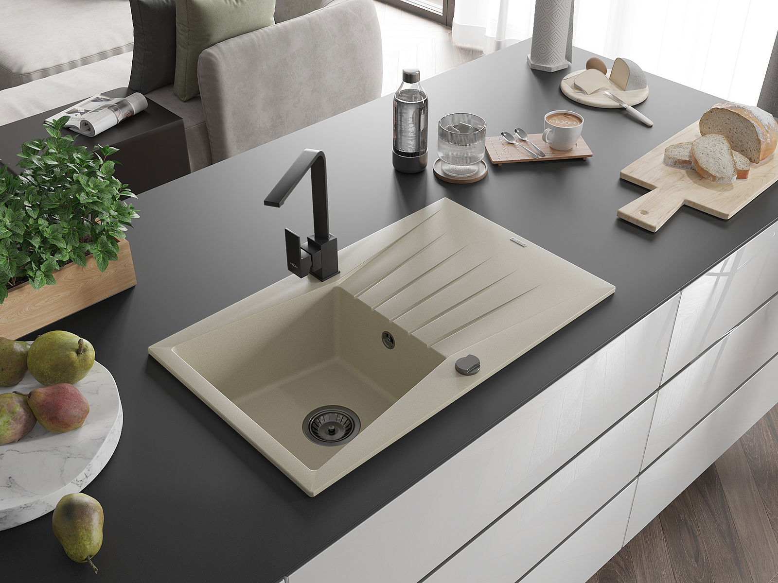The surface of the sink is resistant to stains and discoloration, thanks to which it is easy to clean and retains its color for a long time. Aesthetic and practically complementing every kitchen.