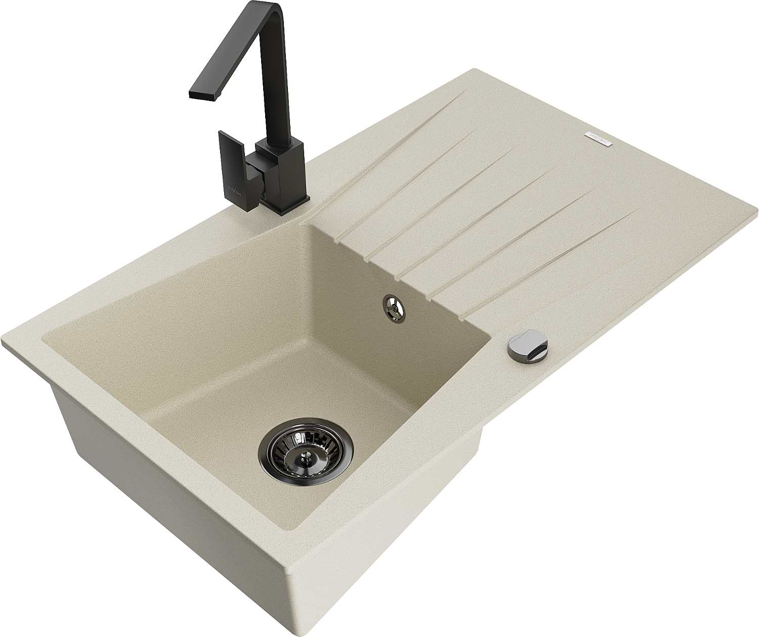 The sink is made of high quality granite. It is an elegant and, above all, practical complement to every kitchen, regardless of its style. High quality and granite durability ensure many years of use.