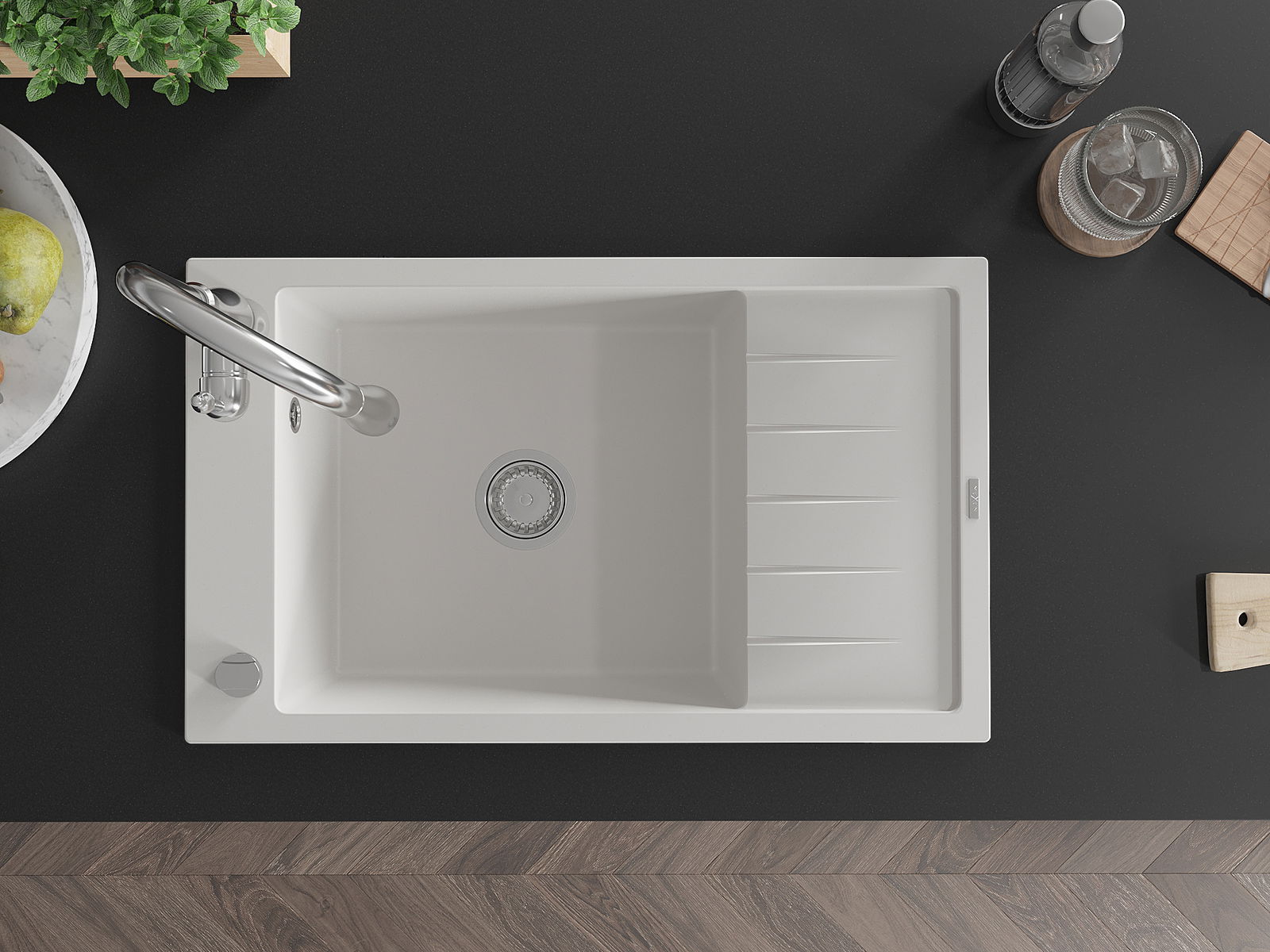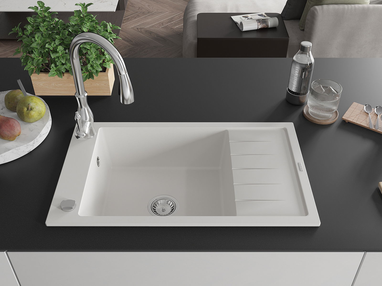 The sink is made of high quality granite. It is an elegant and, above all, practical complement to every kitchen, regardless of its style. High quality and granite durability ensure many years of use.