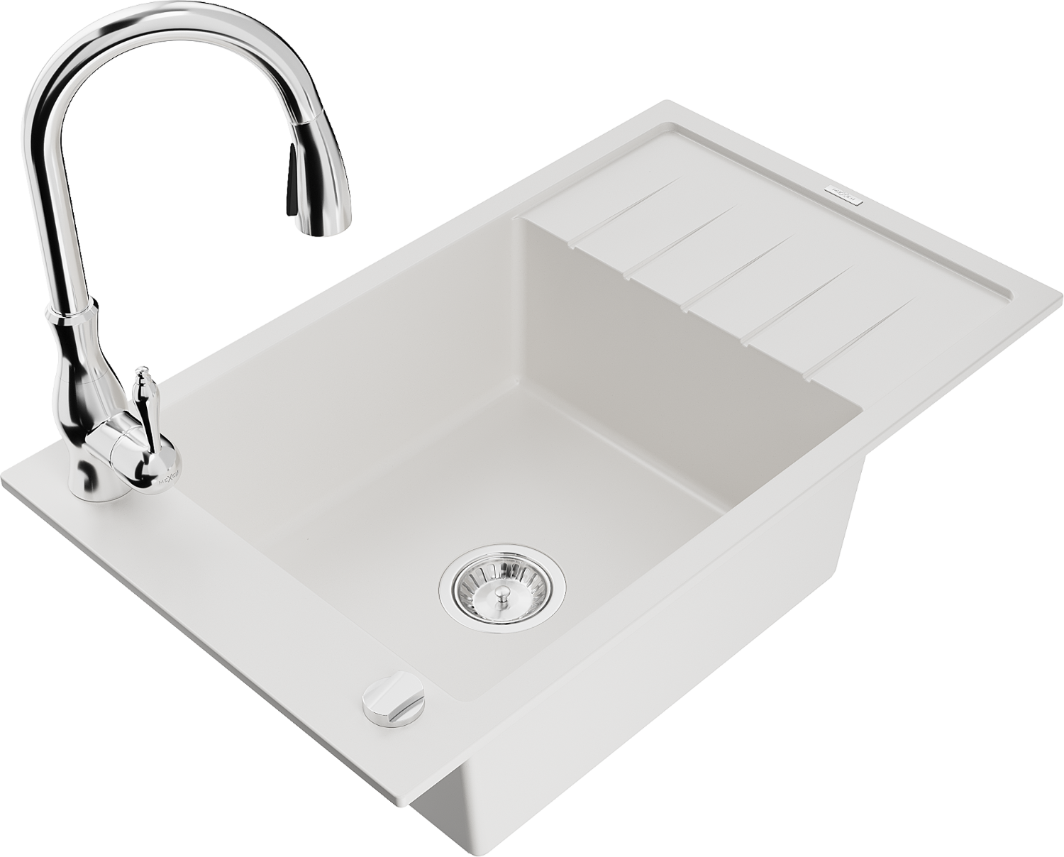 Mexen Elias 1-Bowl Granite Sink with Drainer and Savita Kitchen Tap, White - 6511-20-672601-00