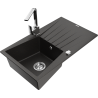 Mexen Cesar single-bowl granite sink with drainer and Rita kitchen tap, grey - 6514-71-670300-00
