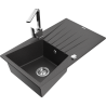 Mexen Cesar 1-bowl granite sink with drainer and Rita kitchen tap, black/silver metallic - 6514-73-670300-00