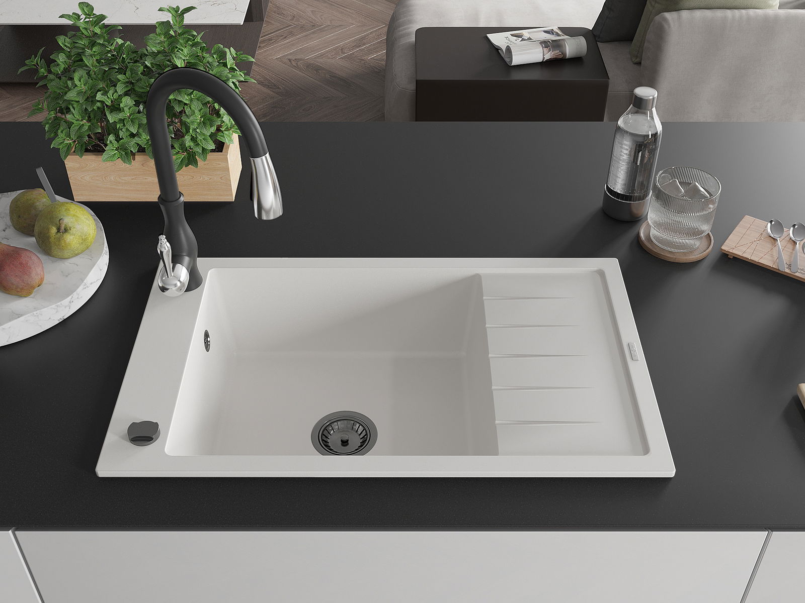 The surface of the sink is resistant to stains and discoloration, thanks to which it is easy to clean and retains its color for a long time. Aesthetic and practically complementing every kitchen.