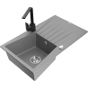 Mexen Cesar granite sink, 1-bowl with drainer and Rita kitchen tap, black/silver metallic - 6514-73-670300-70