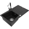 Mexen Cesar 1-Bowl Granite Kitchen Sink with Drainer and Rita Kitchen Tap, Black/Gold Metallic - 6514-75-670300-00