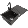 Mexen Cesar granite sink single-bowl with drainer and Rita kitchen tap, black speckled - 6514-76-670300-70