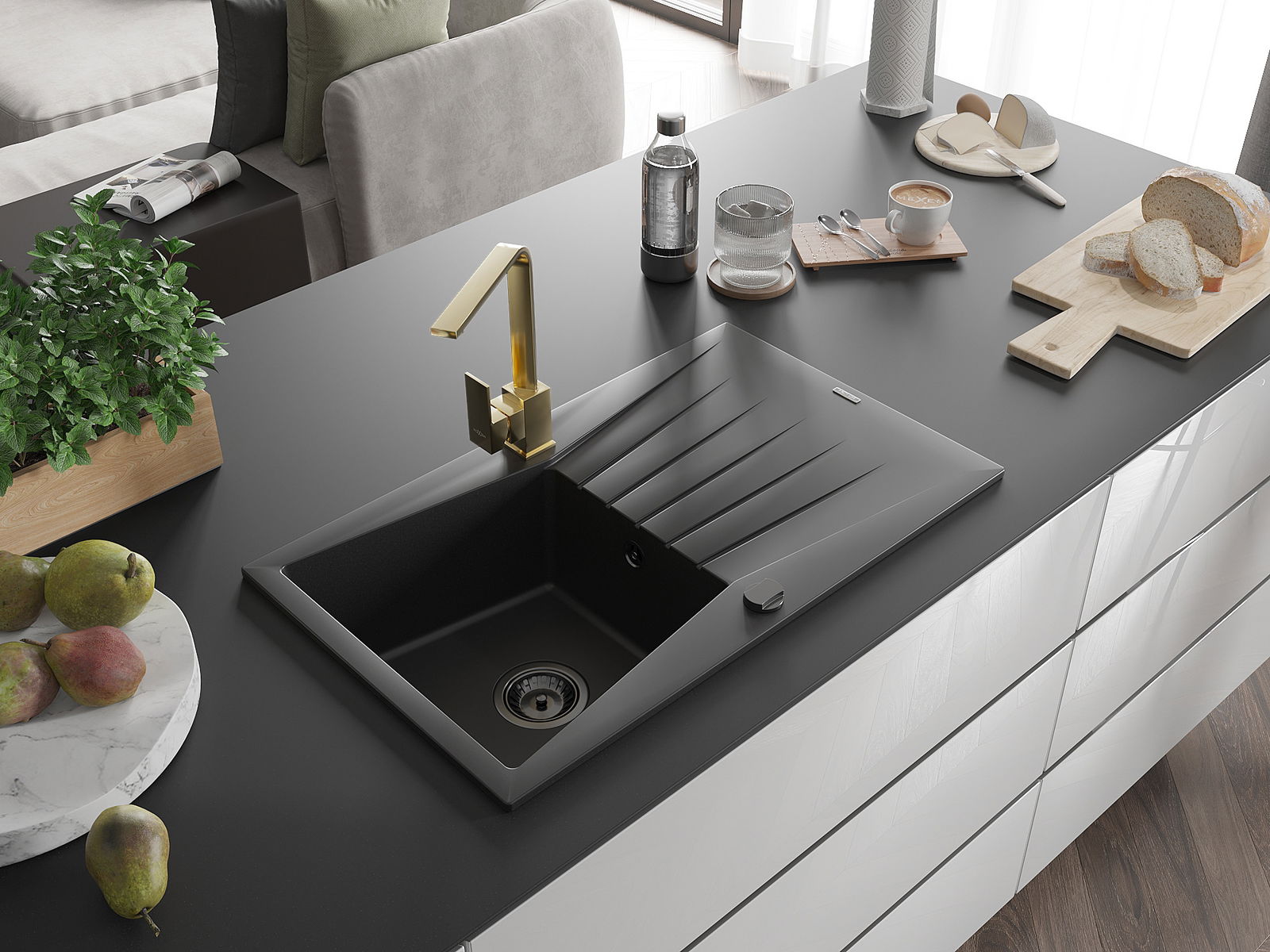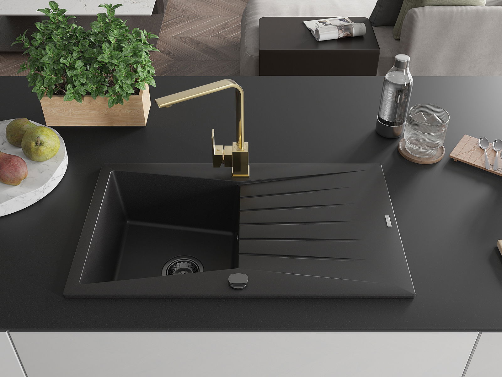 The sink is made of high quality granite. It is an elegant and, above all, practical complement to every kitchen, regardless of its style. High quality and granite durability ensure many years of use.
