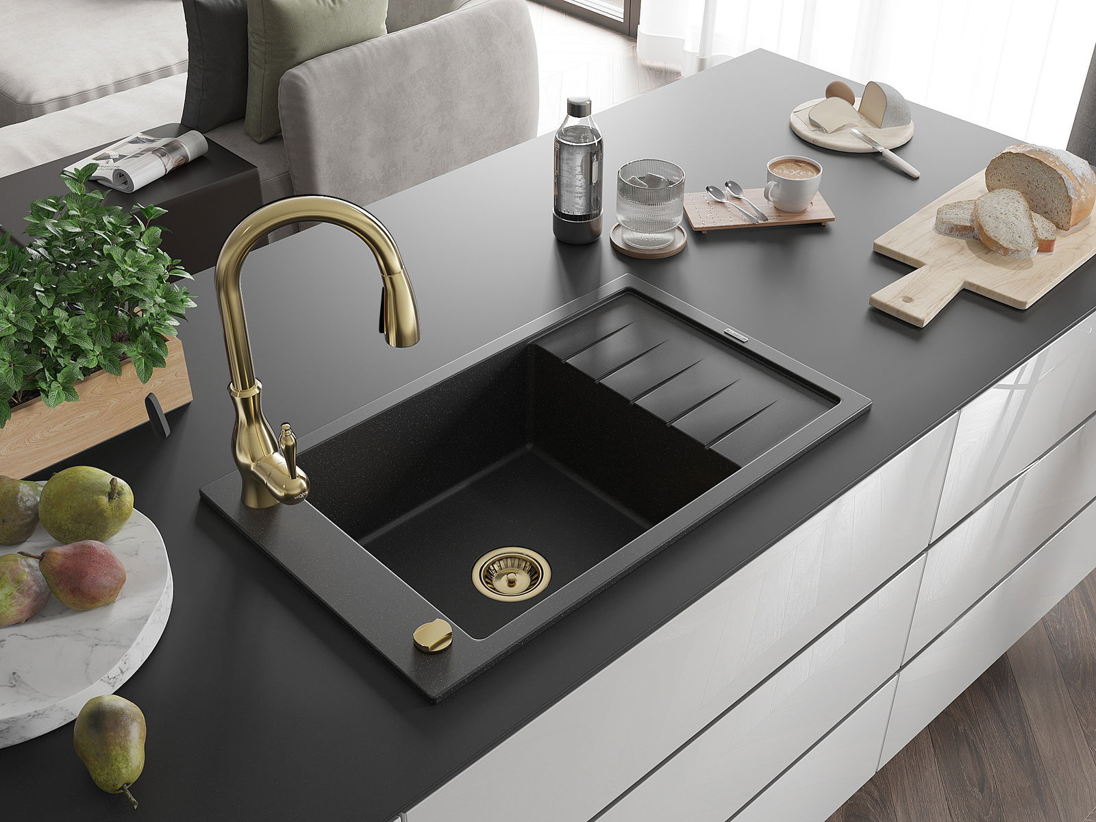 The sink is made of high quality granite. It is an elegant and, above all, practical complement to every kitchen, regardless of its style. High quality and granite durability ensure many years of use.